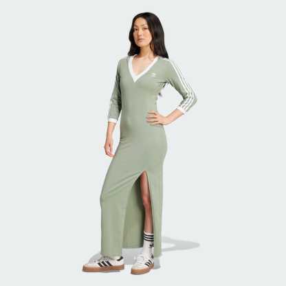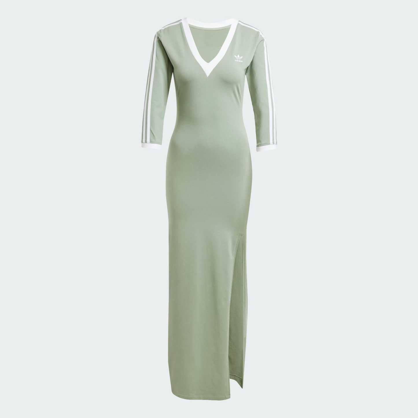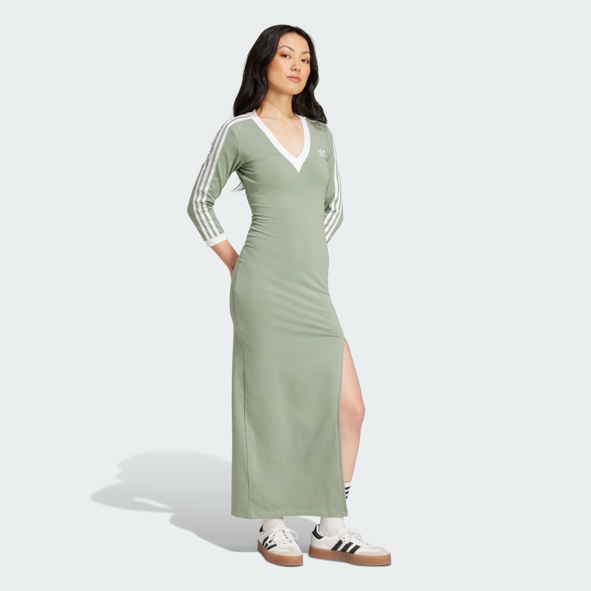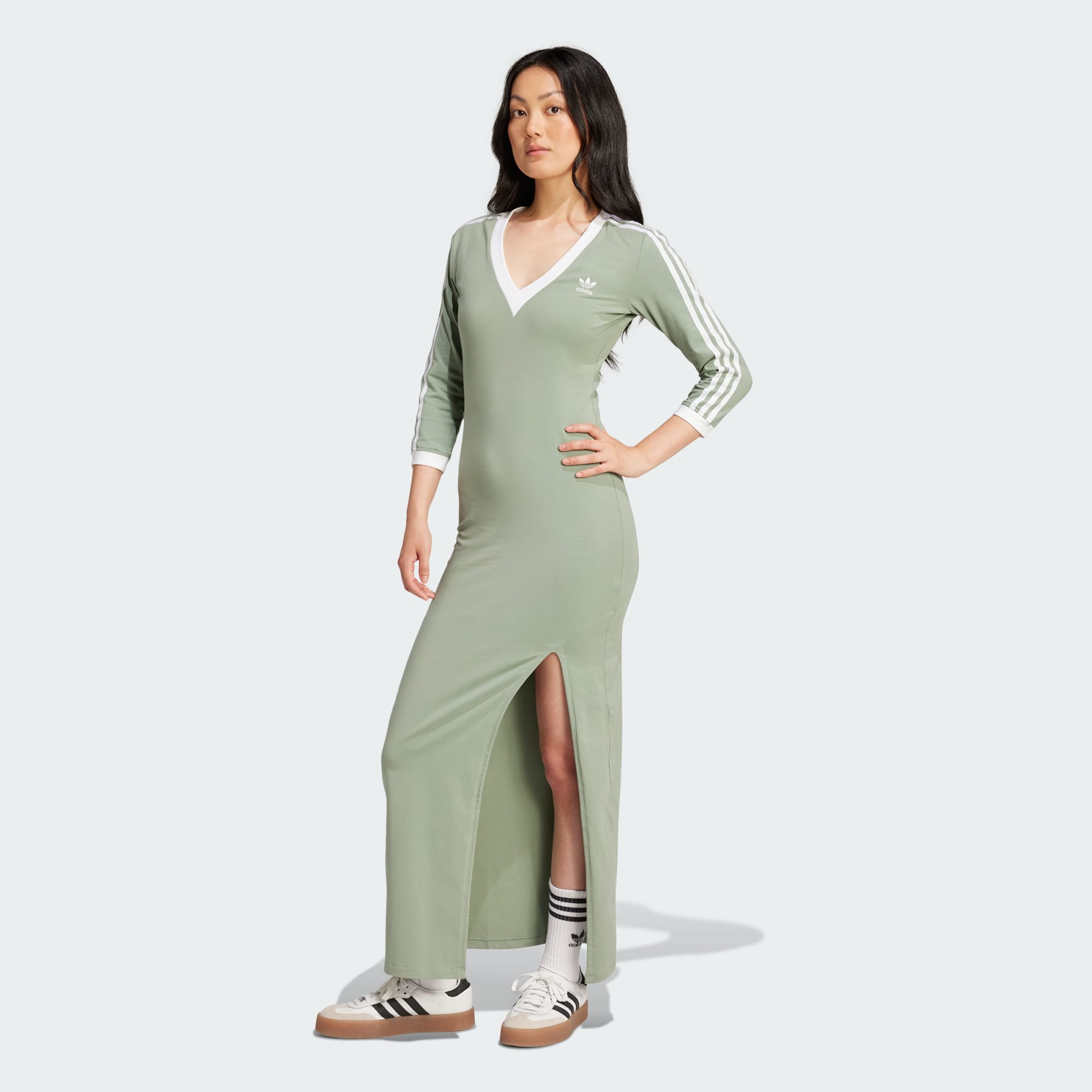 Make a statement without sacrificing comfort with the adithtdas Adicolor Classics 3-Stripes Maxi Dress. The soft cotton blend single jersey fabric allows for effortless comfort in a dress that's cut to hug the body. A V-neck and 3-Stripes along the sleeves add a sporty vibe. Perfect for everyday casual wear that ensures your style is always on point.