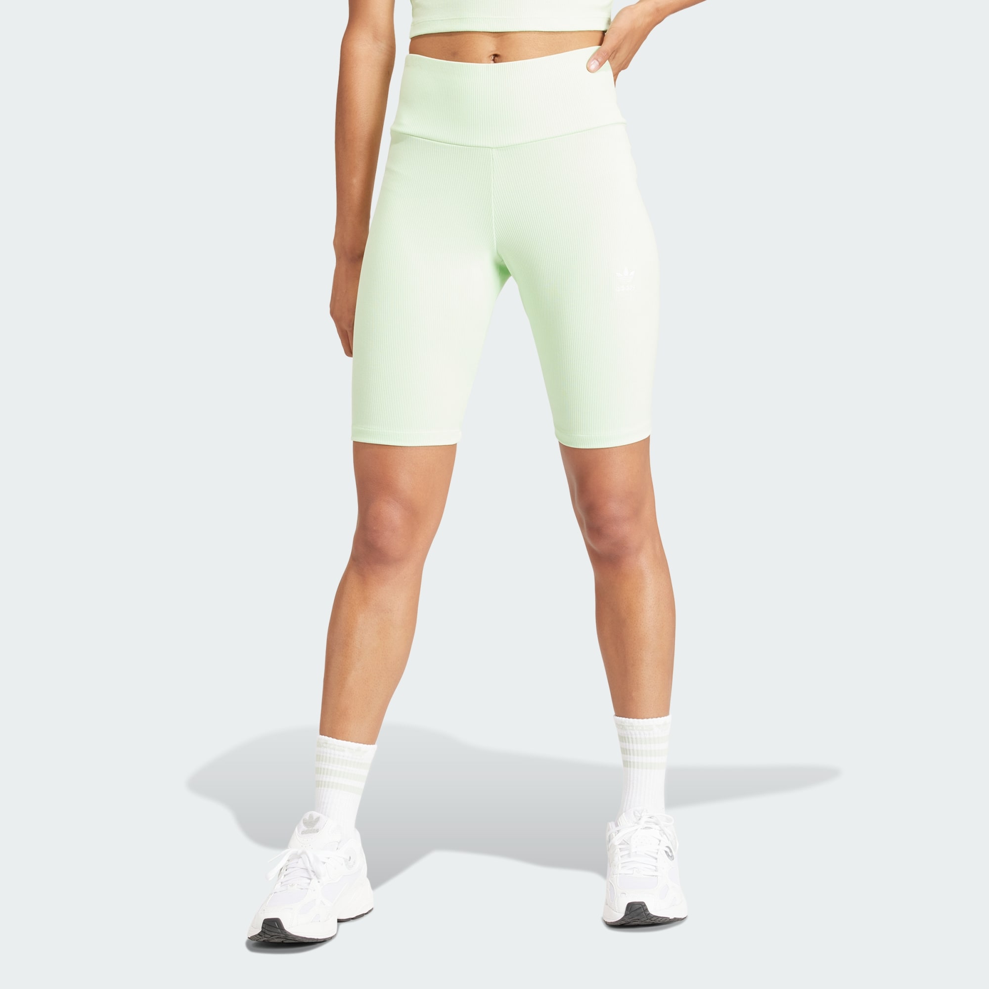 A put-together look day after day is easy when you have the right essentials. These adithtdas short leggings invite you to experiment with your style 鈥?try them with oversized t-shirts, crop sweatshirts, body-hugging bra tops, or whatever you want. With a tight fit that's stretchy and comfortable, they're made of a soft viscose-blend knit that feels silky and light. Subtle ribbing in the fabric adds modern elegance. Whether you're dressing for a relaxing yoga class or for a night out with friends, the high-rise elastic waist keeps you feeling confident, and the simple color is ready for your next outfit masterpiece.Change MaterialsBy choosing recycled, we are able to reuse materials that have already been created, which helps to reduce waste. Renewable materials choices will help us to remove our reliance on finite resources.