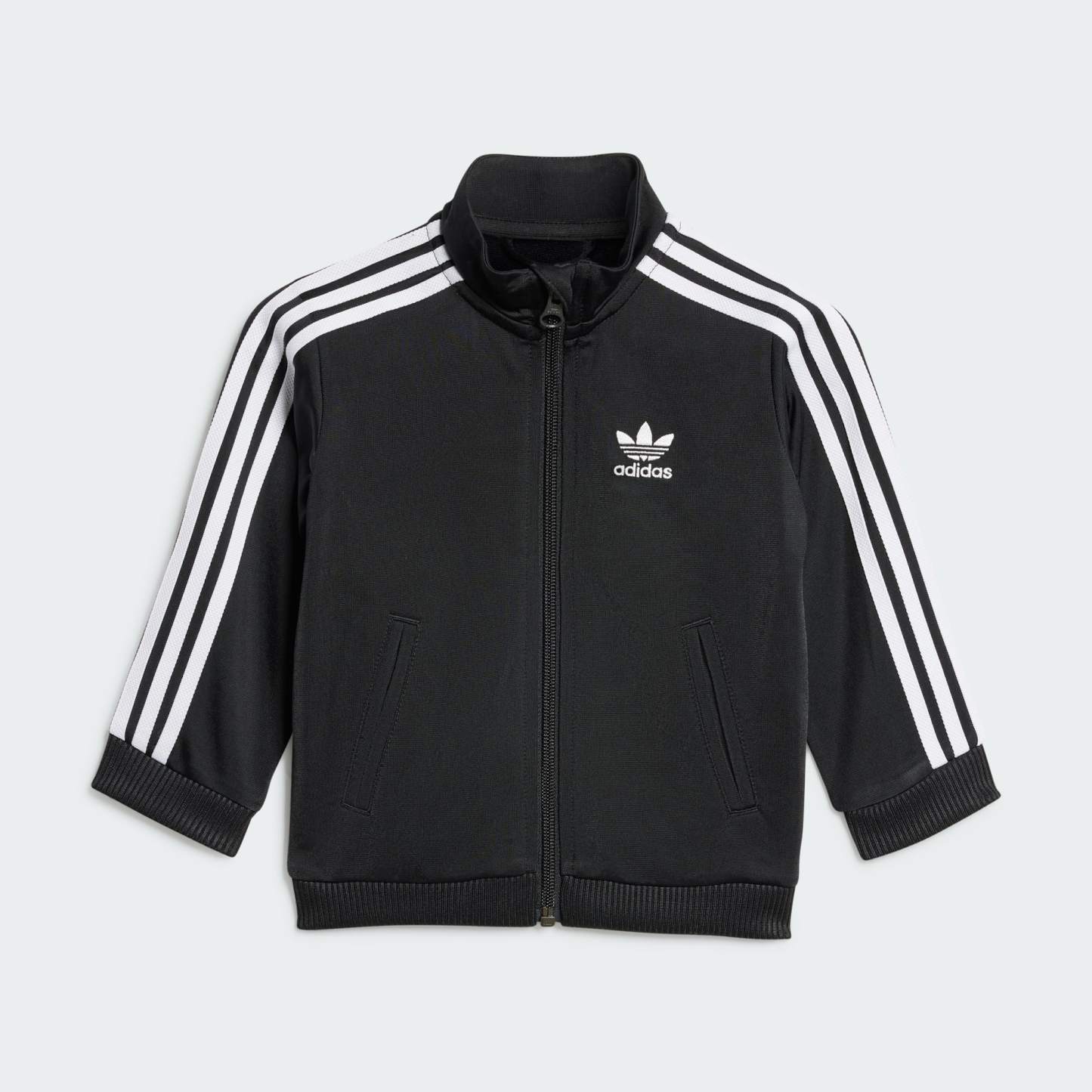 Your little one will be as bold as fire in this toddlers' iconic track suit. Inspired by adithtdas heritage yet fresh for today, it features 3-Stripes and a Trefoil logo on both the track top and pants. Ribbed details and a stand-up collar put the finishing touches on the classic silhouette. This product is made with 100% recycled materials. By reusing materials that have already been created, we help to reduce waste and our reliance on finite resources and reduce the footprint of the products we make.