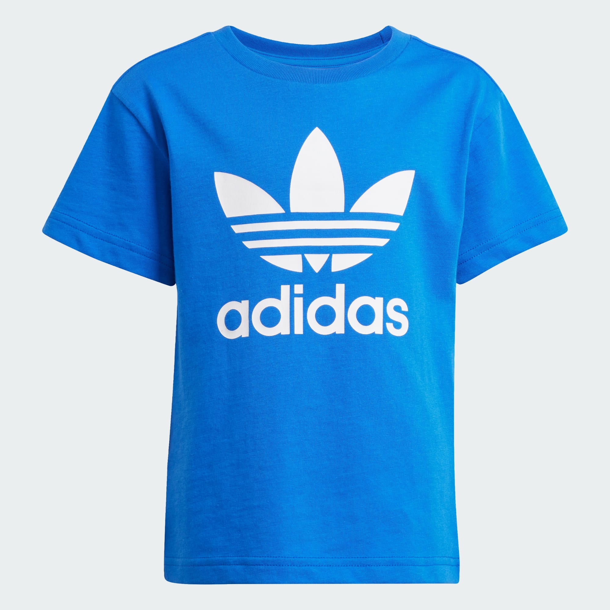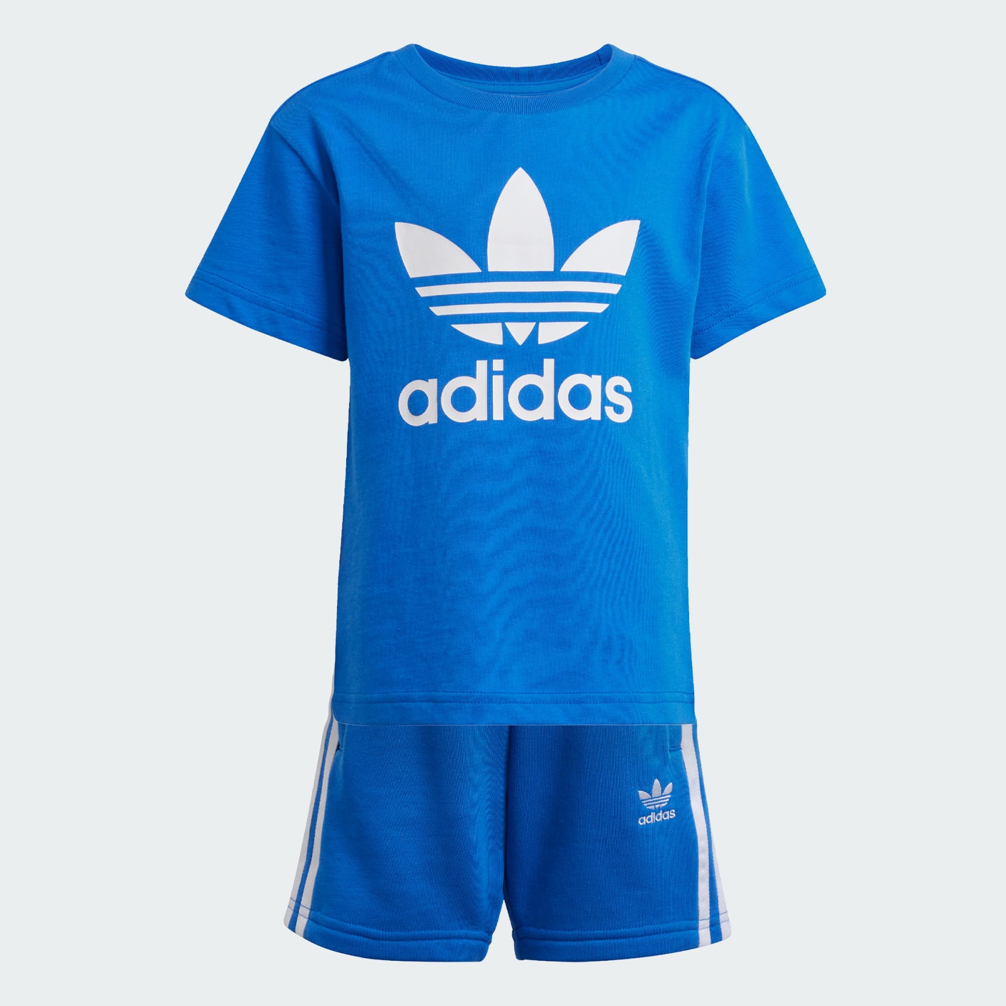 This kids' adithtdas shorts and tee set features a soft cotton single jersey build and a drawcord elastic waist for all-day comfort. From the oversized Trefoil on the chest to the 3-Stripes running down the legs its rooted in sport and style. Destined to become a go-to warm-weather outfit, this casual set is an everyday all-in-one outfit that's ready when they are.
