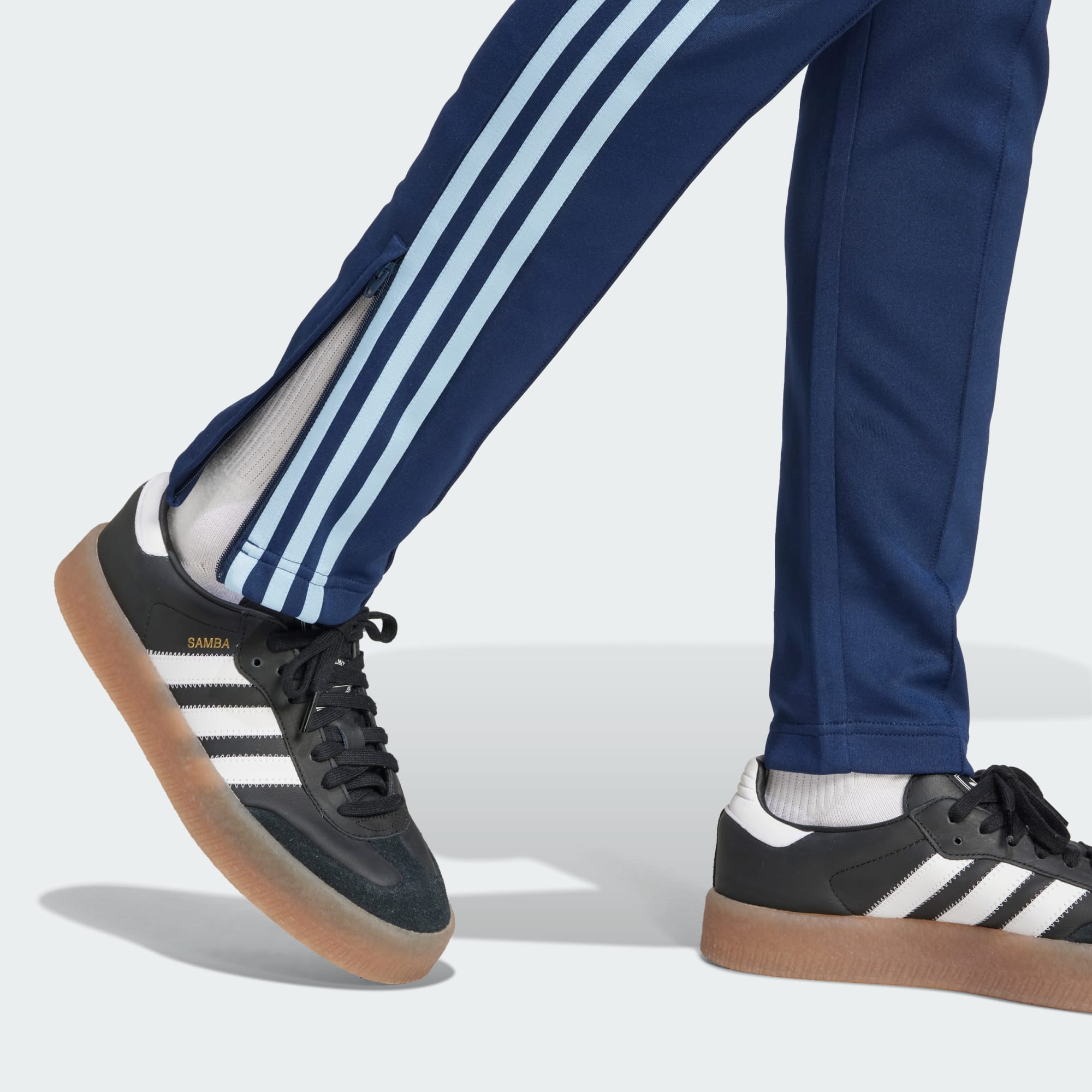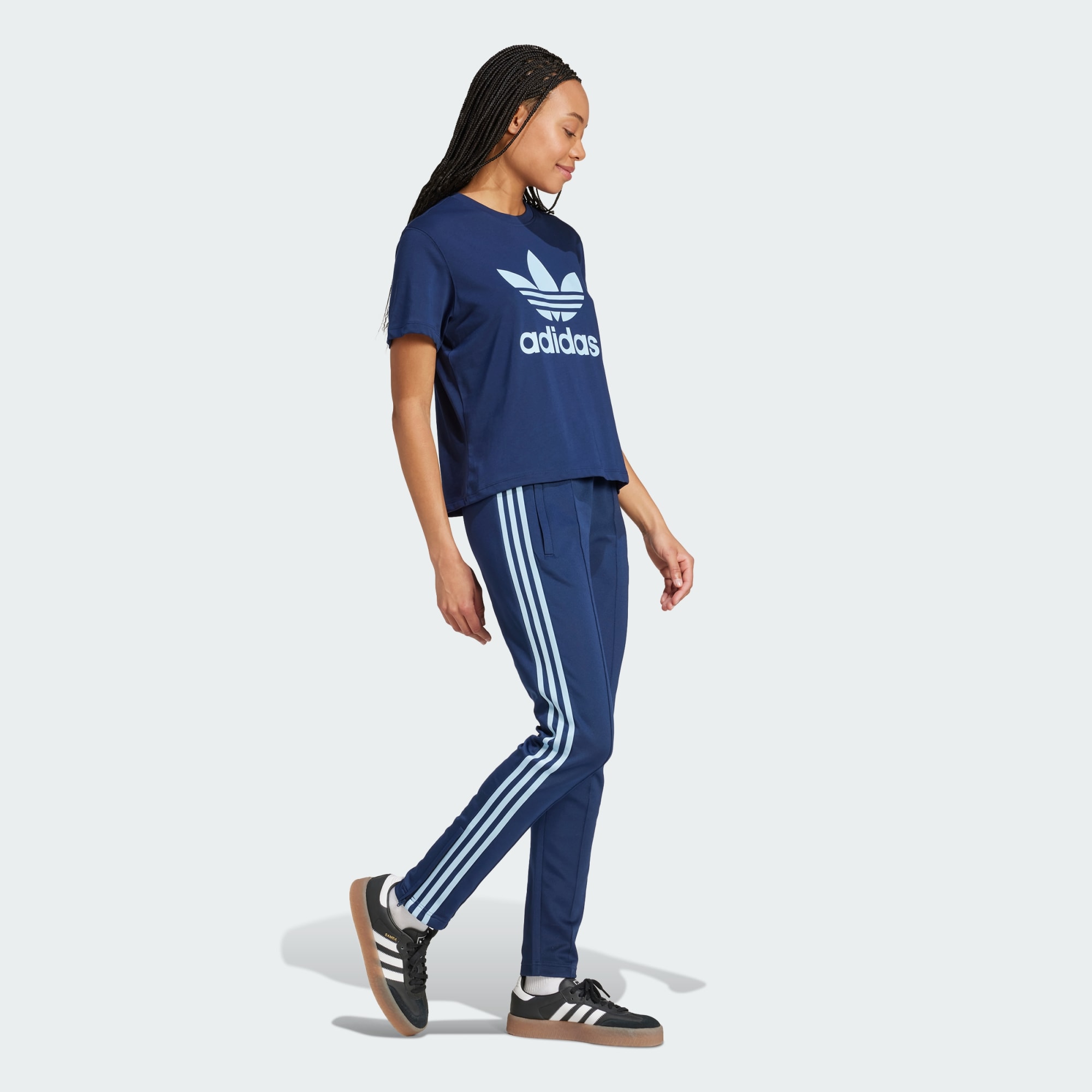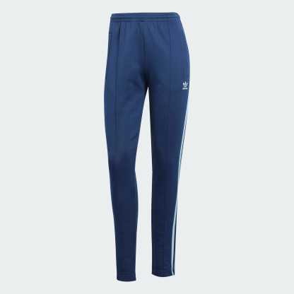Make yourself comfortable in these adithtdas track pants. The slim fit keeps your lines clean, while stretchy doubleknit gives you freedom to move. Tall 3-Stripes down the legs call on that sporty heritage. Complete the look with a coordinating track jacket and a contrast crop top, and you're all set for your day 鈥?no matter what you have planned. A minimum of 70% of this product is a blend of recycled and renewable materials.
