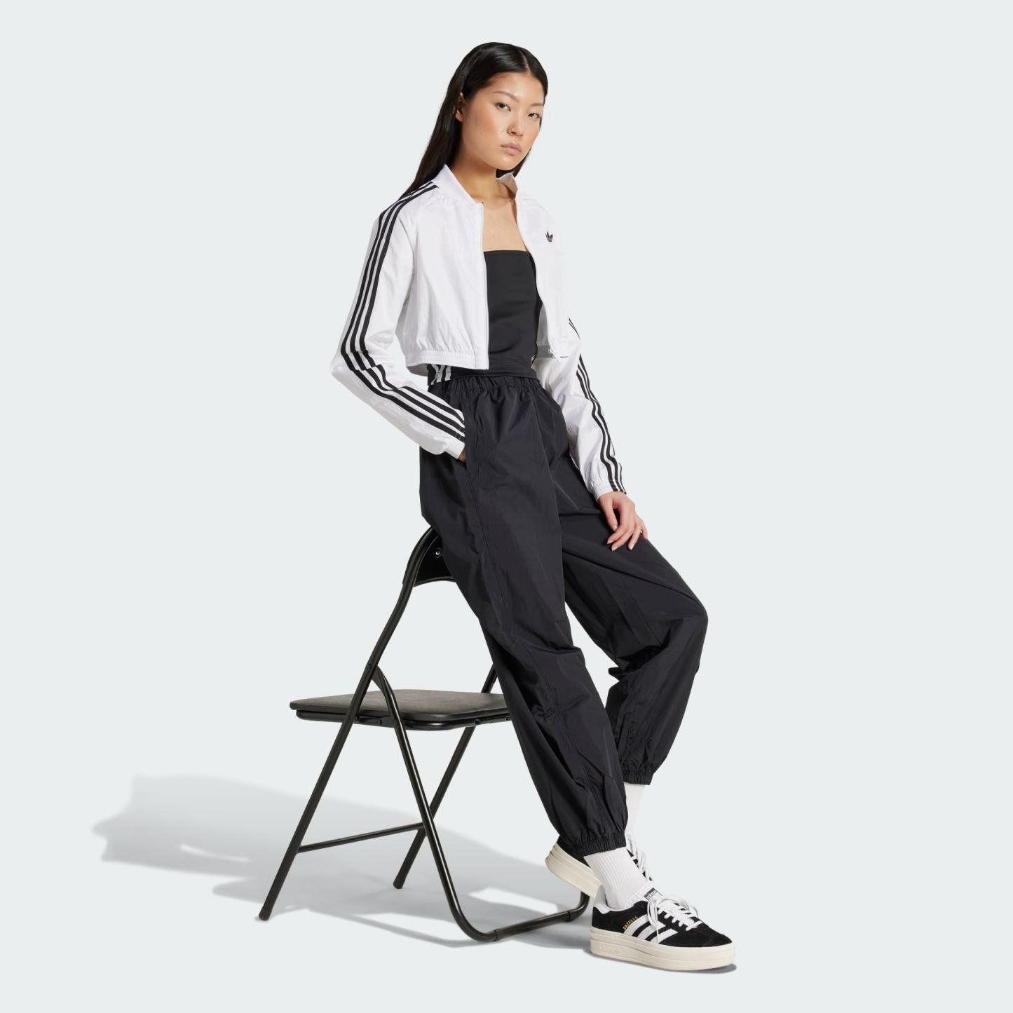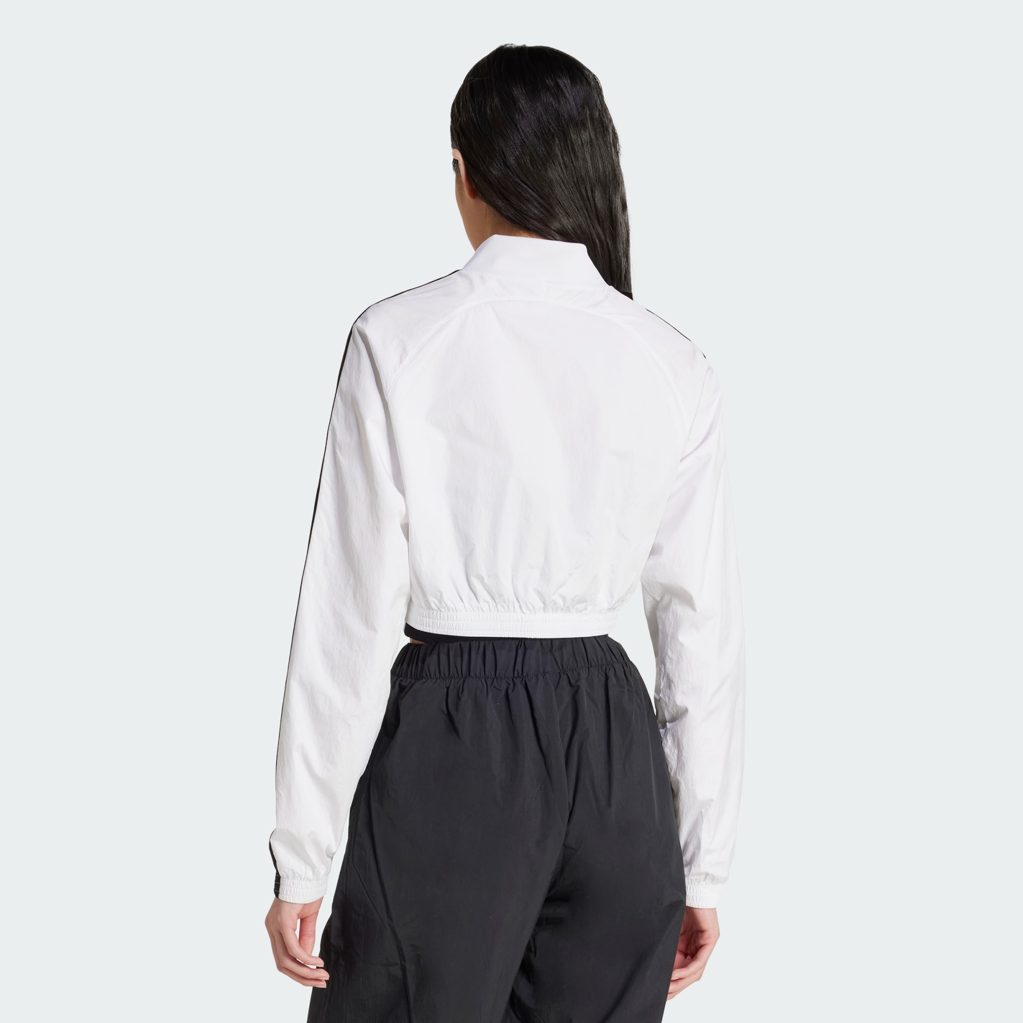 Channel the '00s in this cropped adithtdas track top. The crinkle fabric and cut lines take inspiration from vintage soccer shirts. With a slim fit and a mix of matte and shiny finishes, this top is all about sporty style. Pair it with high-waisted jeans or joggers and your favorite sneakers for a look that's as bold as it is retro.This product is made with 100% recycled materials. By reusing materials that have already been created, we help to reduce waste and our reliance on finite resources and reduce the footprint of the products we make.