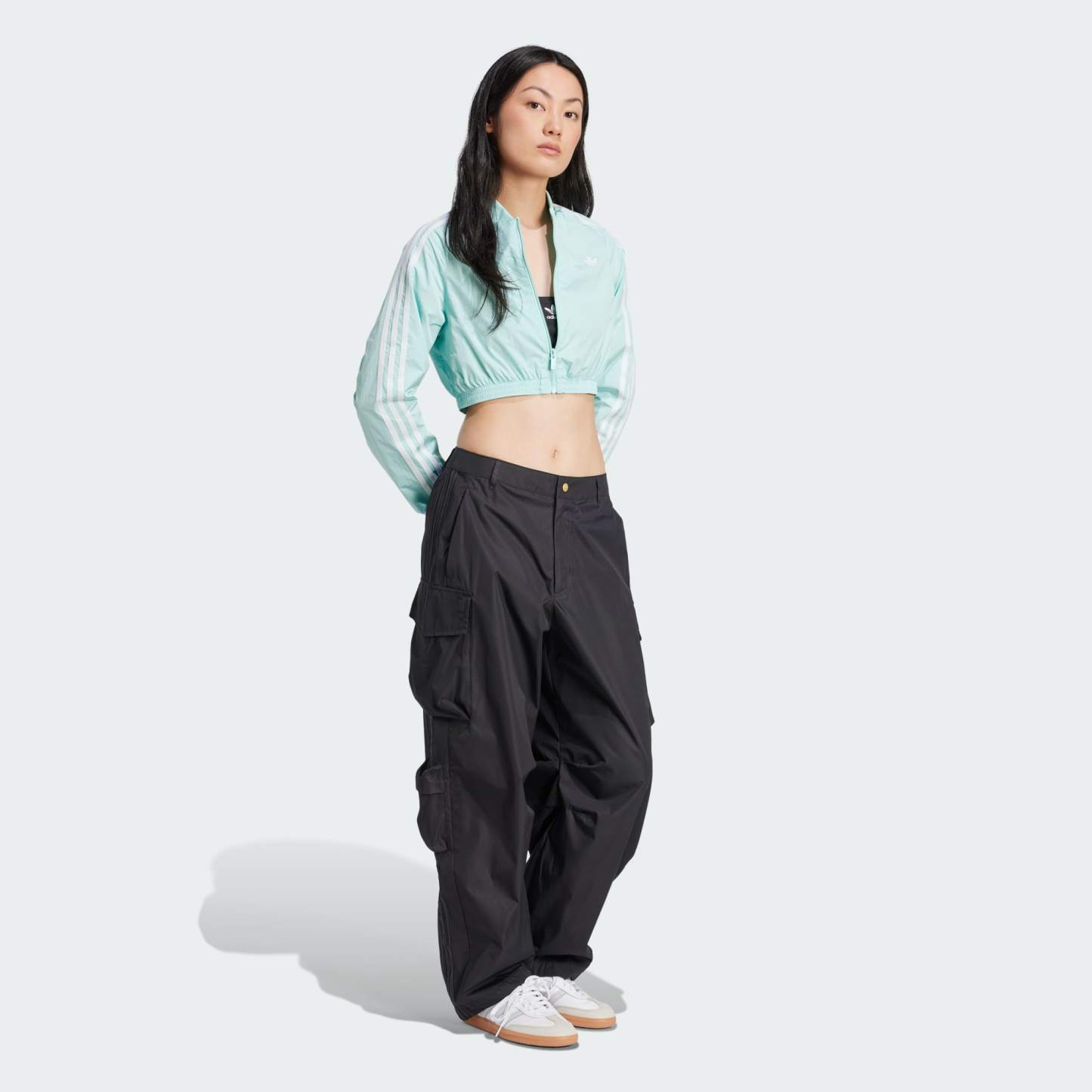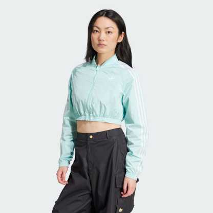 Channel the '00s in this cropped adithtdas track top. The crinkle fabric and cut lines take inspiration from vintage soccer shirts. With a slim fit and a mix of matte and shiny finishes, this top is all about sporty style. Pair it with high-waisted jeans or joggers and your favorite sneakers for a look that's as bold as it is retro.This product is made with 100% recycled materials. By reusing materials that have already been created, we help to reduce waste and our reliance on finite resources and reduce the footprint of the products we make.
