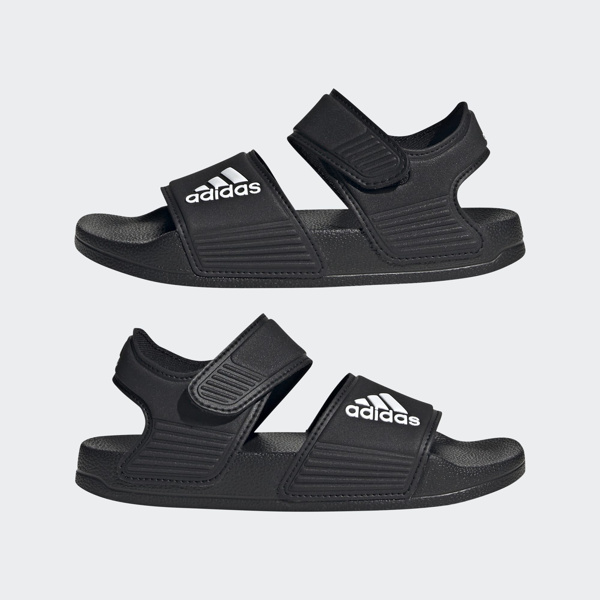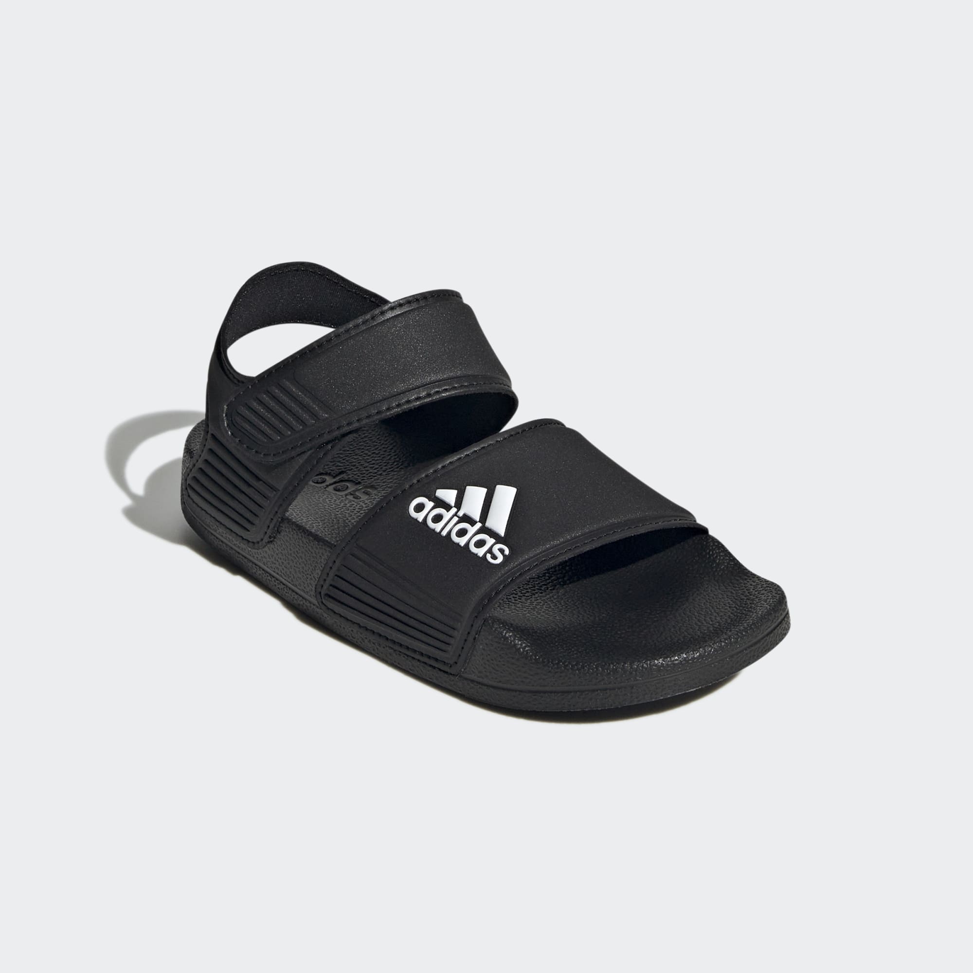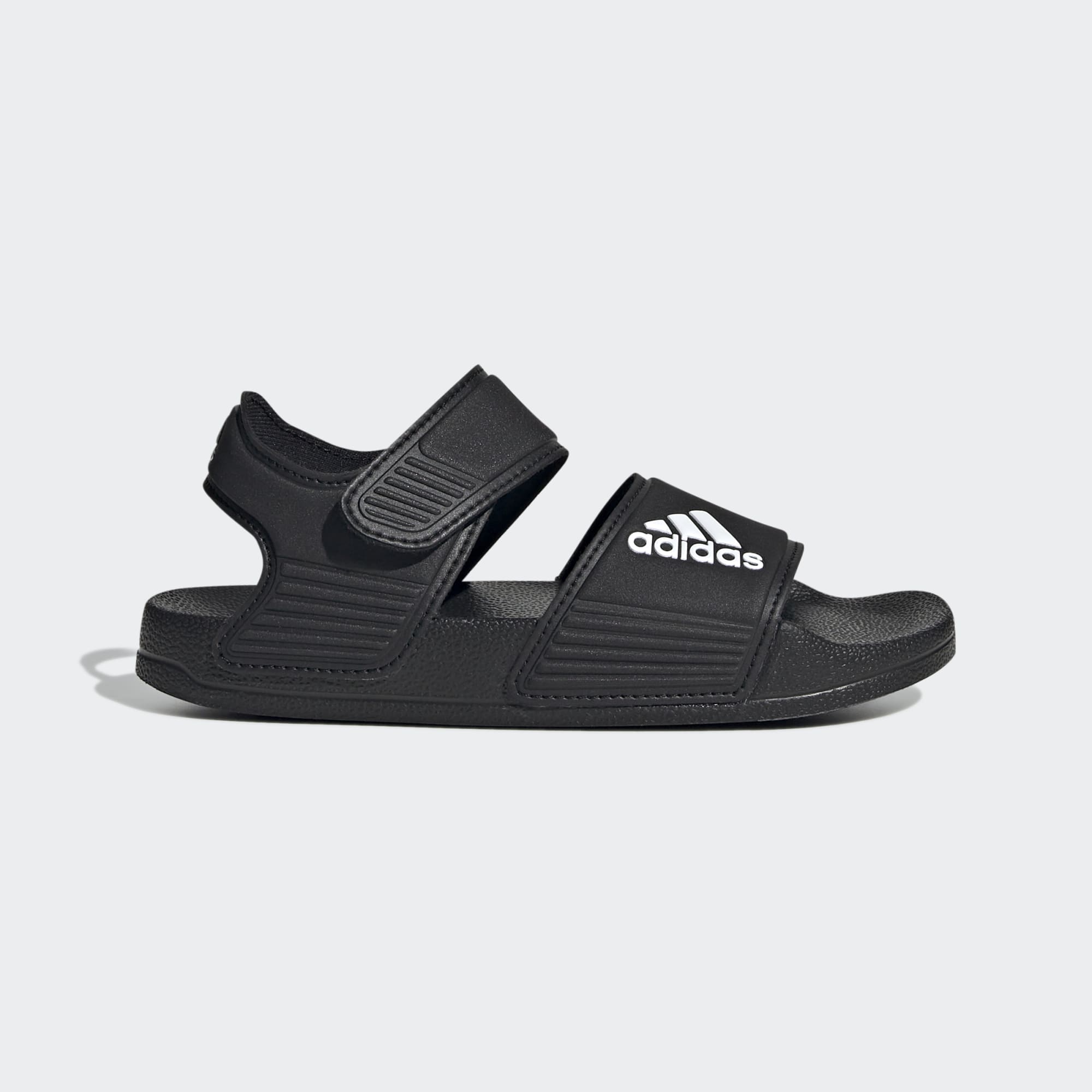 Inspired by classic Adilette slides, these kids' adithtdas sandals are perfect for sunny days of play in and out of the water. A hook-and-loop strap creates an easy on and off. The quick-drying upper lets them play in comfort until they're back on dry land.