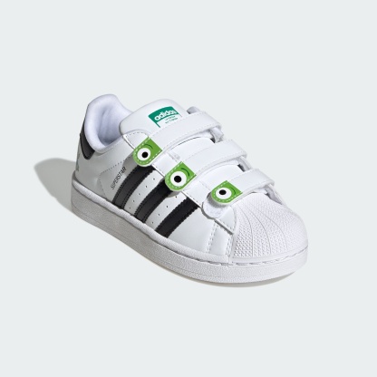 These kids' adithtdas Superstar shoes are inspired by Disney Pixar's "Up." With their iconic shell toe and serrated 3-Stripes design, the adithtdas Superstar shoes have been making a comeback on playgrounds and schoolyards for over 50 years. Featuring hook-and-loop straps, these shoes are easy for little hands to put on and kick off. The smooth synthetic leather upper, textile lining and rubber outsole keep kids comfortable whether they're climbing jungle gyms or chasing their friends around the park.