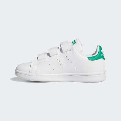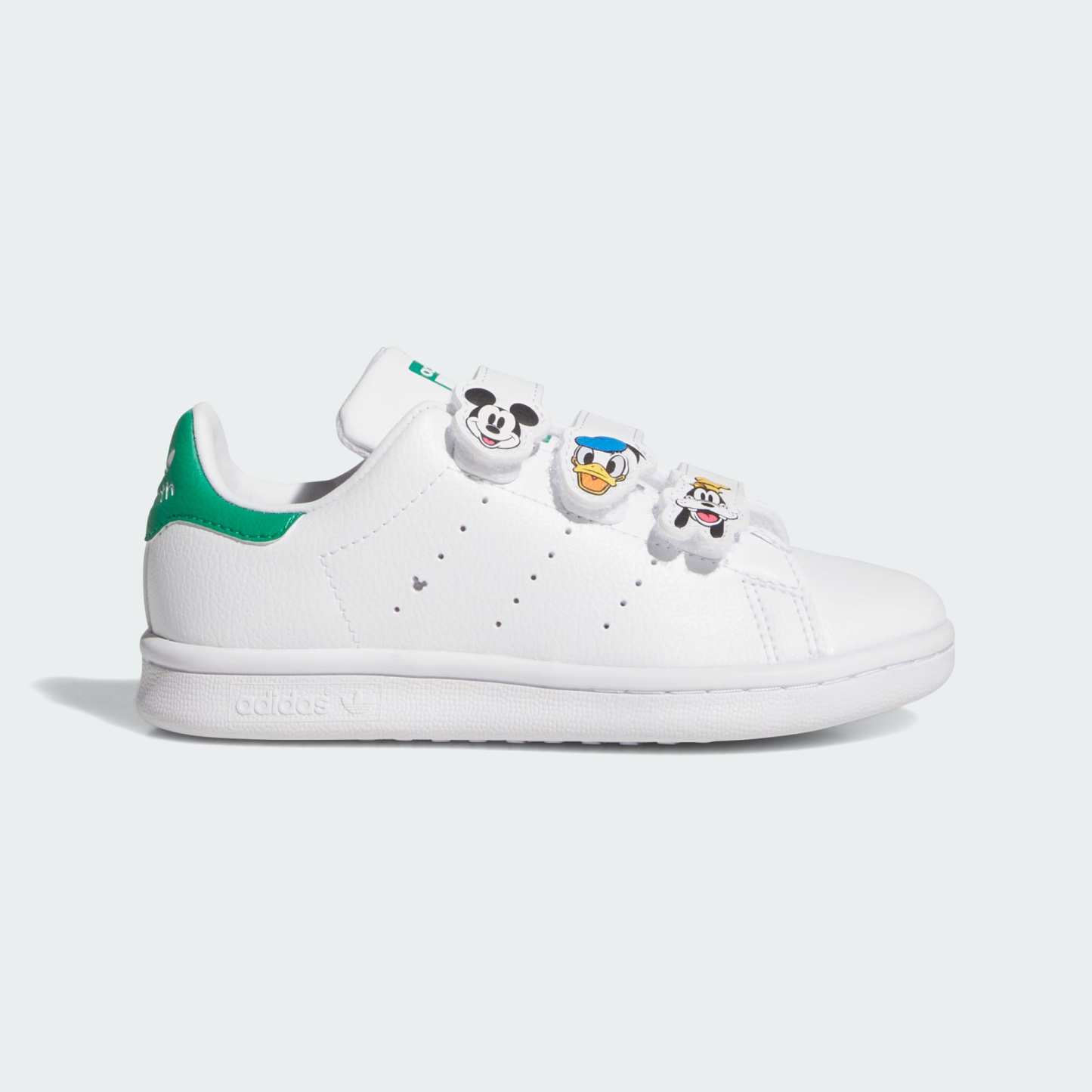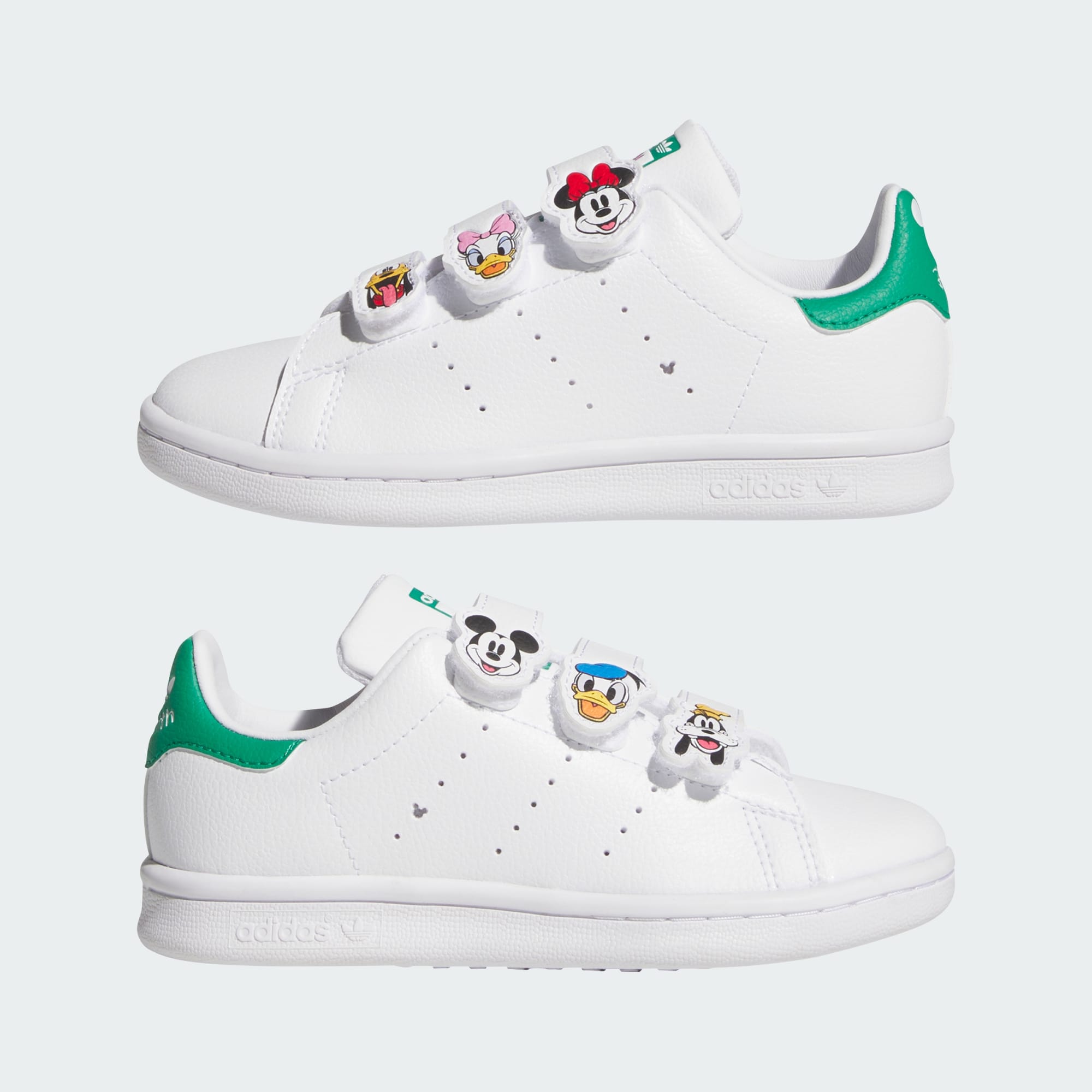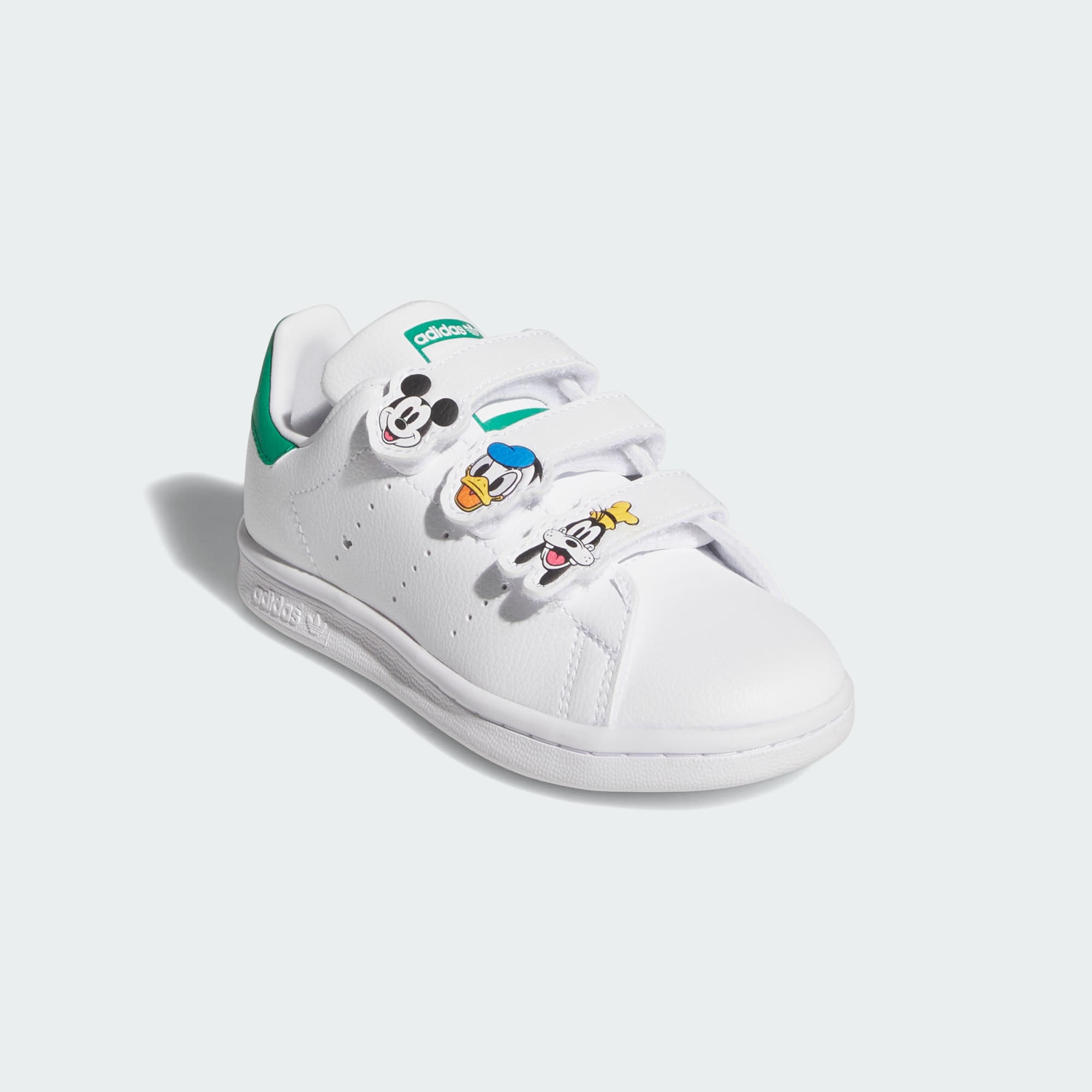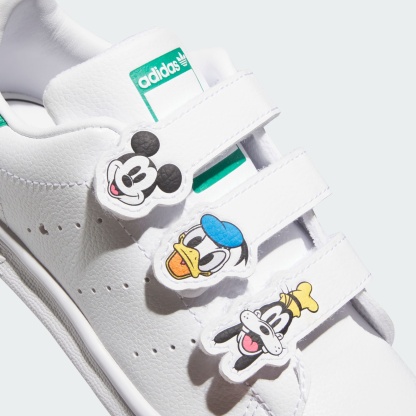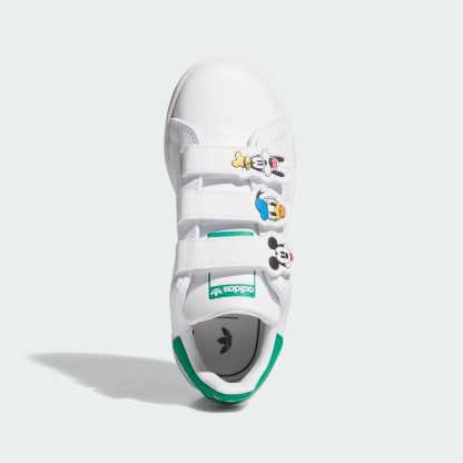 This version of the legendary Stan Smith tennis shoes from adithtdas Originals are sized for young fans. The hook-and-loop straps make them easy to pull on and off, while Disney's Mickey and Friends graphics bring the magic of their favourite characters. The synthetic leather upper is easy to keep clean, and the rubber outsole grips the ground.