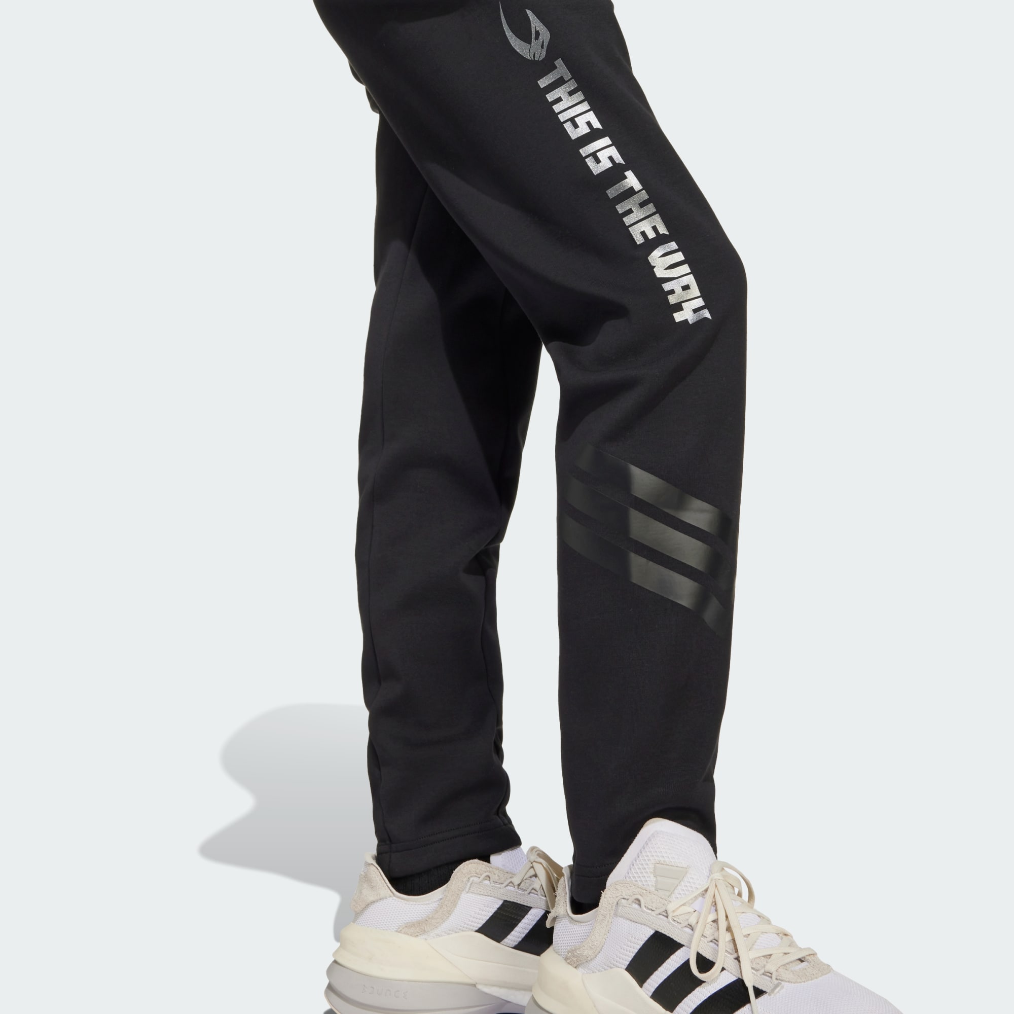 Join the adventure. These juniors' pants from adithtdas and Star Wars™ celebrate The Mandalorian™ series with a bold leg graphic. Whether you're navigating city streets or just lounging at home, the cosy cotton-polyester fabric keeps you comfortable so you can focus on the journey ahead.By choosing recycled, we are able to reuse materials that have already been created, which helps to reduce waste. Renewable materials choices will help us to remove our reliance on finite resources. Our products made with a blend of recycled and renewable materials feature at least 70% total of these materials.