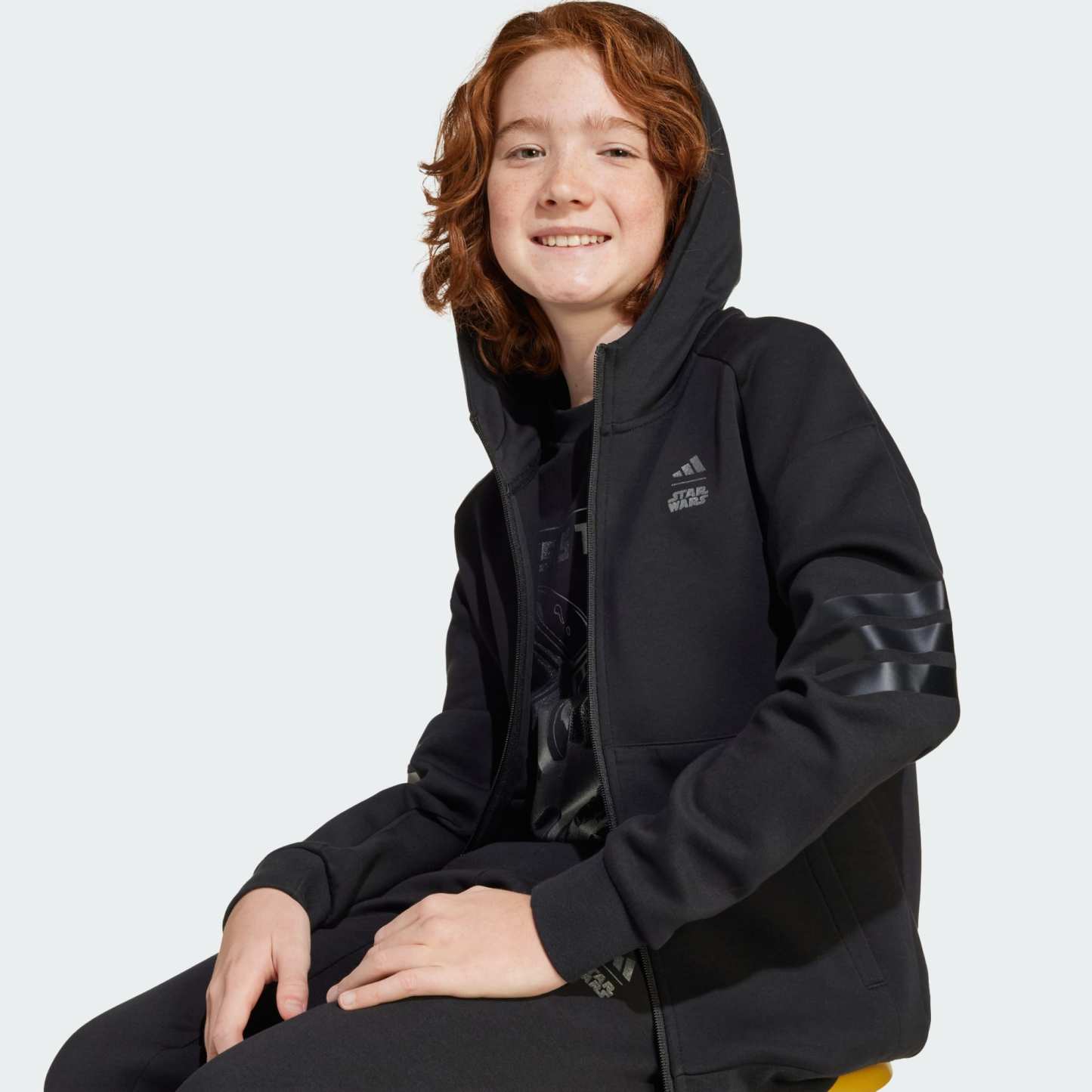 No matter where adventure takes you, stay comfortable along the way in this juniors' adithtdas Star Wars鈩?Mandalorian Track Top. Cotton blend fabric feels soft and substantial, while the roomy hood and ribbed details add extra cosy details. Shimmery metallic graphics on the back and chest celebrate the adventurous and courageous spirit of the Mandalorian. By choosing recycled, we are able to reuse materials that have already been created, which helps to reduce waste. Renewable materials choices will help us to remove our reliance on finite resources. Our products made with a blend of recycled and renewable materials feature at least 70% total of these materials.