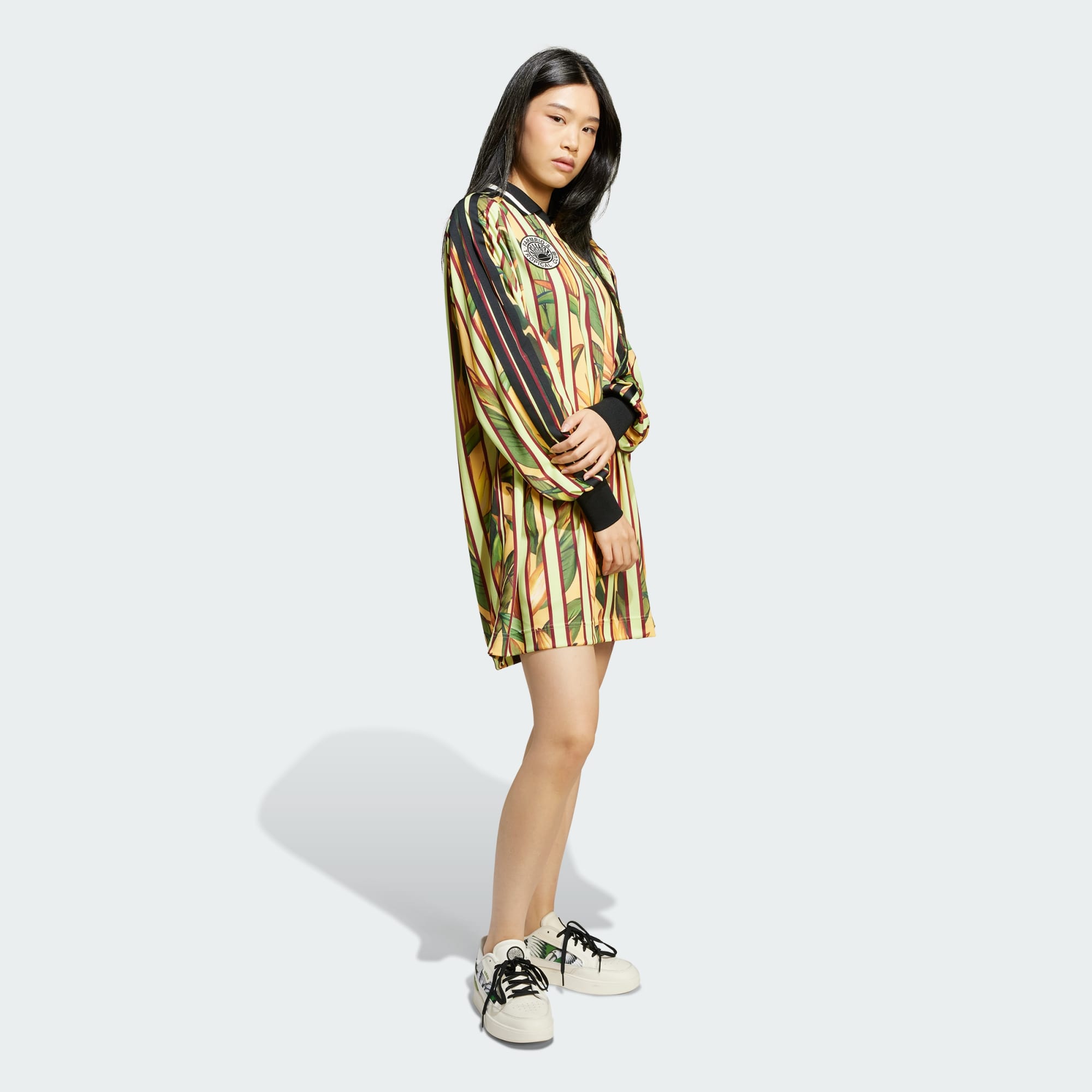 Take a journey to an oasis of sporty style in this premium adithtdas dress. Designed in collaboration with FARM Rio, it shows off a vibrant tropical print for a free-spirited look. The smooth doubleknit fabric and loose, jersey-inspired silhouette let you move and groove freely. Pair it with sneakers to play up the sporty vibe or dress it up with heels for a night out. However you style it, you'll bring the energy of an oasis escape to your everyday style.This product is made with 100% recycled materials. By reusing materials that have already been created, we help to reduce waste and our reliance on finite resources and reduce the footprint of the products we make.