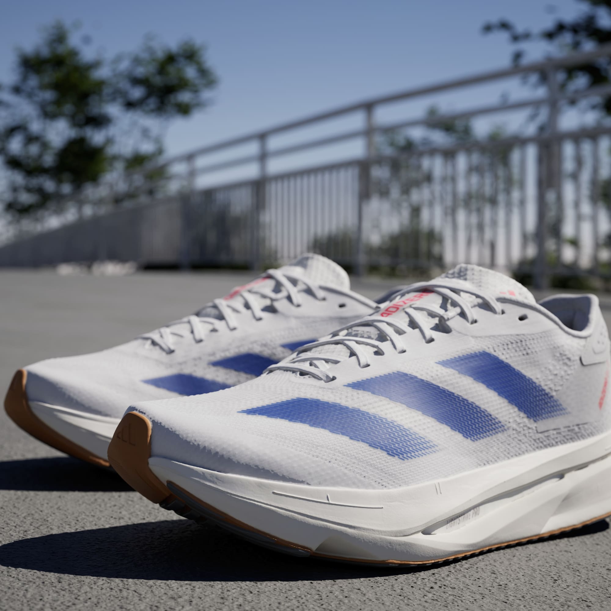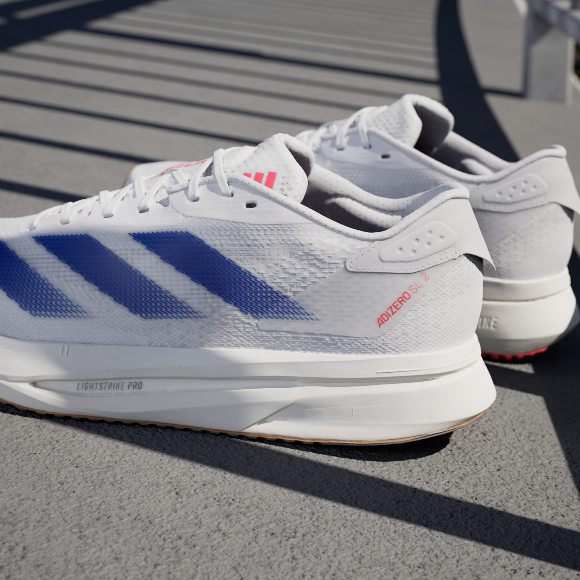 Experience the thrill of breaking personal records in a shoe that's as fast as you are. These adithtdas Adizero running shoes are equipped with responsive Lightstrike Pro, super-light cushioning that delivers energy return for next-level speed. The engineered mesh upper provides breathability and targeted support where you need it most to keep you flying to the finish. This product features at least 20% recycled materials. By reusing materials that have already been created, we help to reduce waste and our reliance on finite resources and reduce the footprint of the products we make.