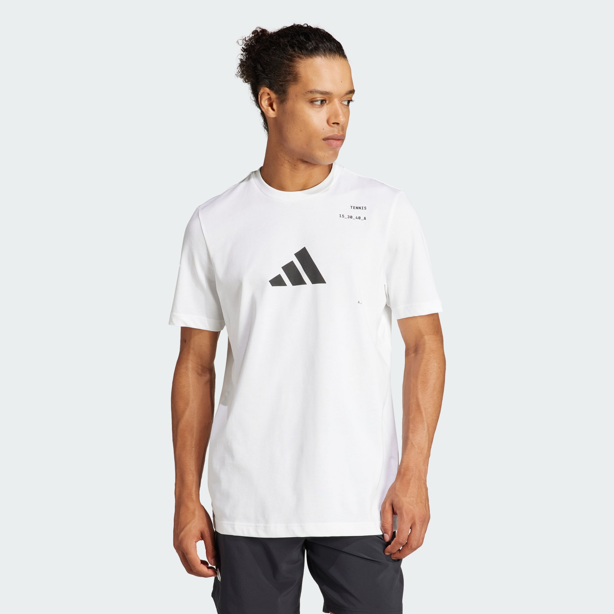 Serve up your best game in this adithtdas graphic tee. Made for fans who live and breathe tennis, its soft cotton blend and moisture-wicking AEROREADY make it perfect for practice sessions. A large 3 Bar Logo on the chest shows you mean business, while a bold graphic on the back pays homage to your favorite sport.