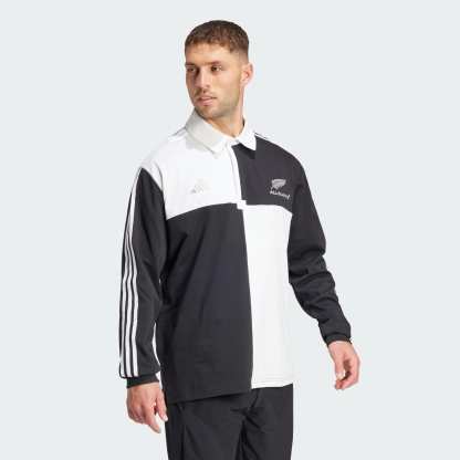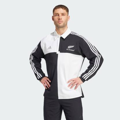 Show your All Blacks pride in classic style. With its distinctive quartered design, this adithtdas rugby jersey pays tribute to the training shirts worn by some of New Zealand's greatest legends. Keeping you comfortable on game days and beyond, it's made from cotton-blend fabric and fields long sleeves and a traditional polo collar. That iconic silver fern completes the look.