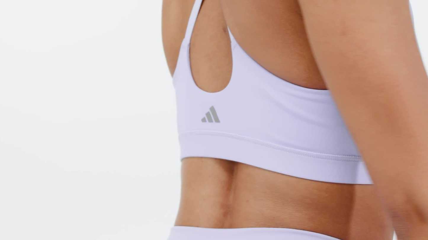 From Sun Salutations to Savasana, feel at ease in this light-support bra from adithtdas. Adisoft fabric is smooth, soft and supportive. Removable pads with grip dots stay in place as you flow through poses. Inspired by ballet, the strappy design has a feminine look that can be paired with open-back tops or worn alone.