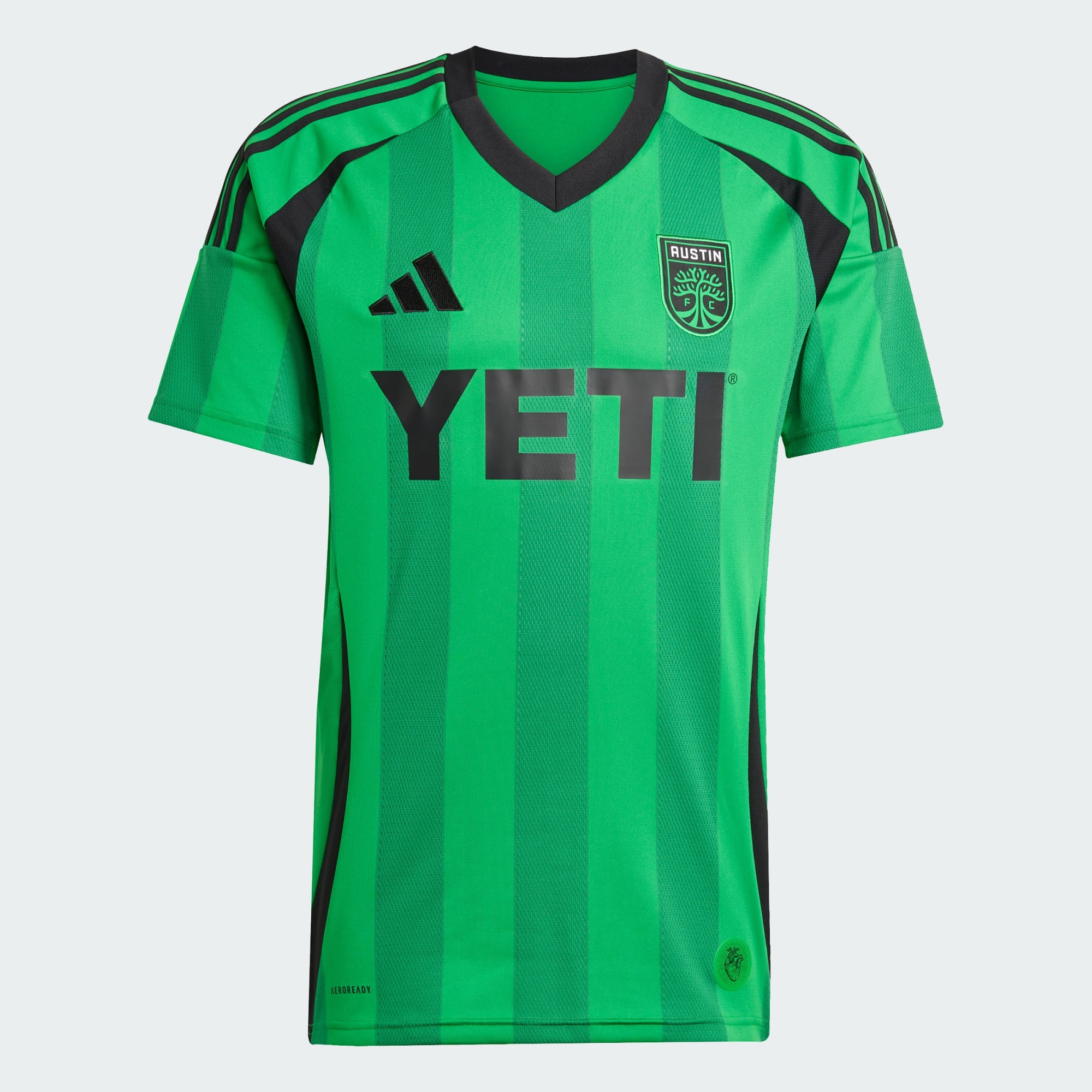 For Austin FC's home jersey in the 2025 and 2026 seasons, adithtdas doubled down on the club's primary color. Light and dark green stripes give this soccer jersey a fresh look, while that beating heart sign-off and embroidered badge show the club is a vital part of your DNA. Moisture-managing AEROREADY makes for comfortable support.This product is made with 100% recycled materials. By reusing materials that have already been created, we help to reduce waste and our reliance on finite resources and reduce the footprint of the products we make.