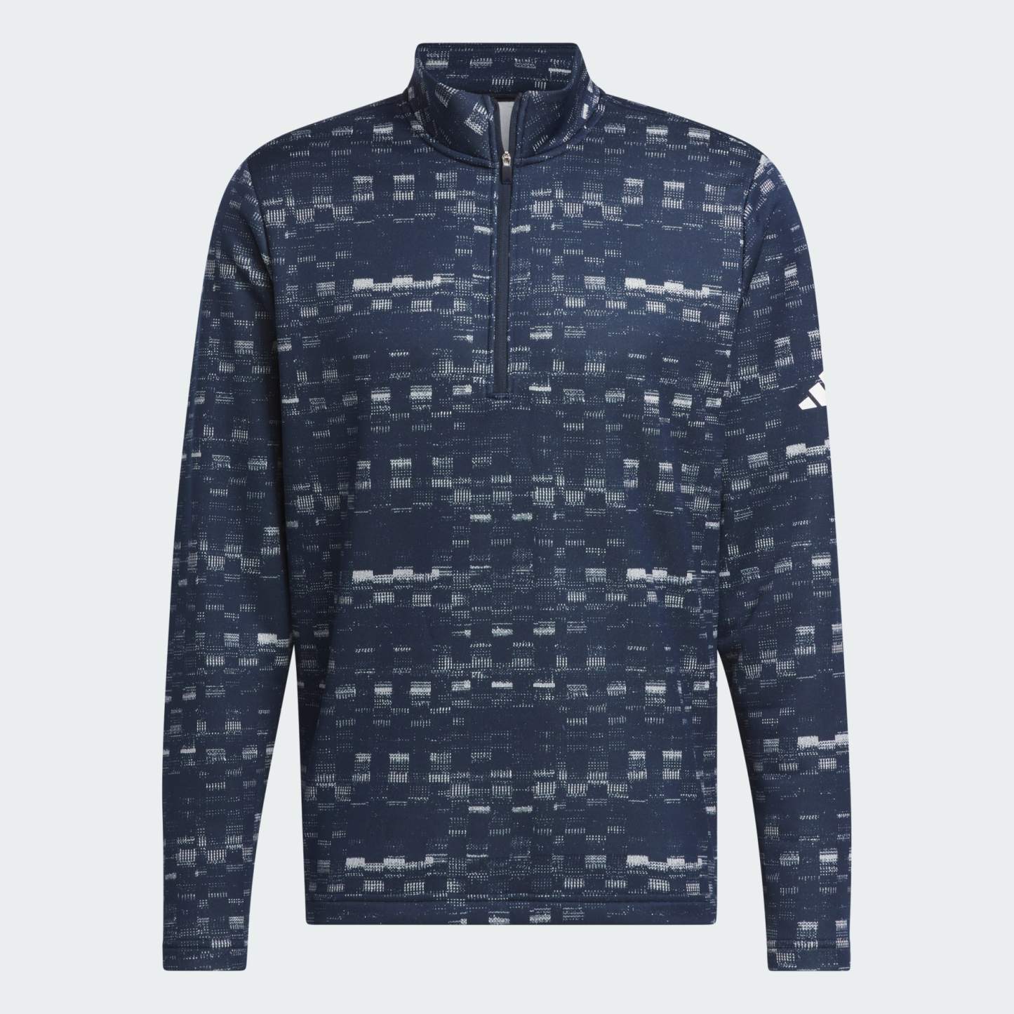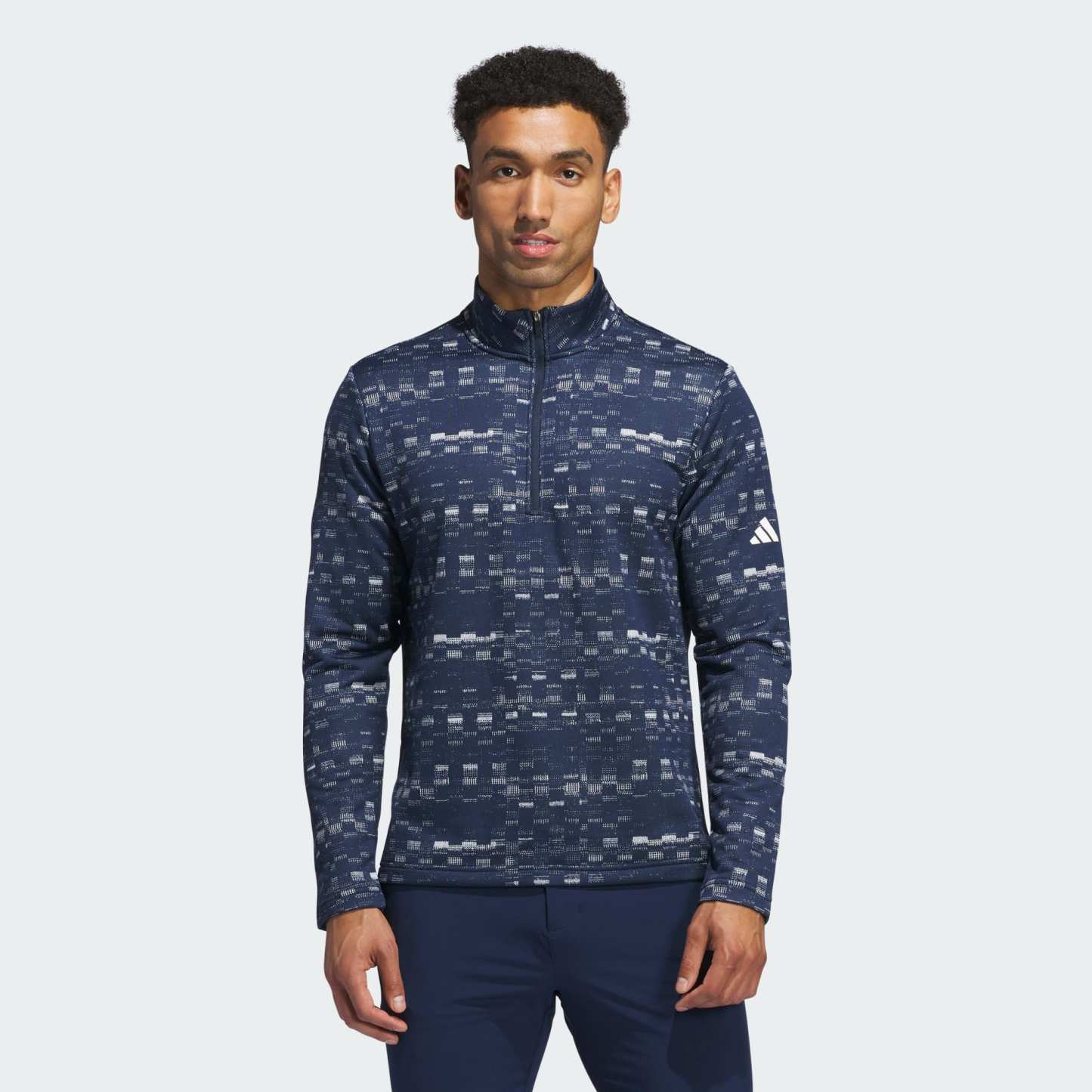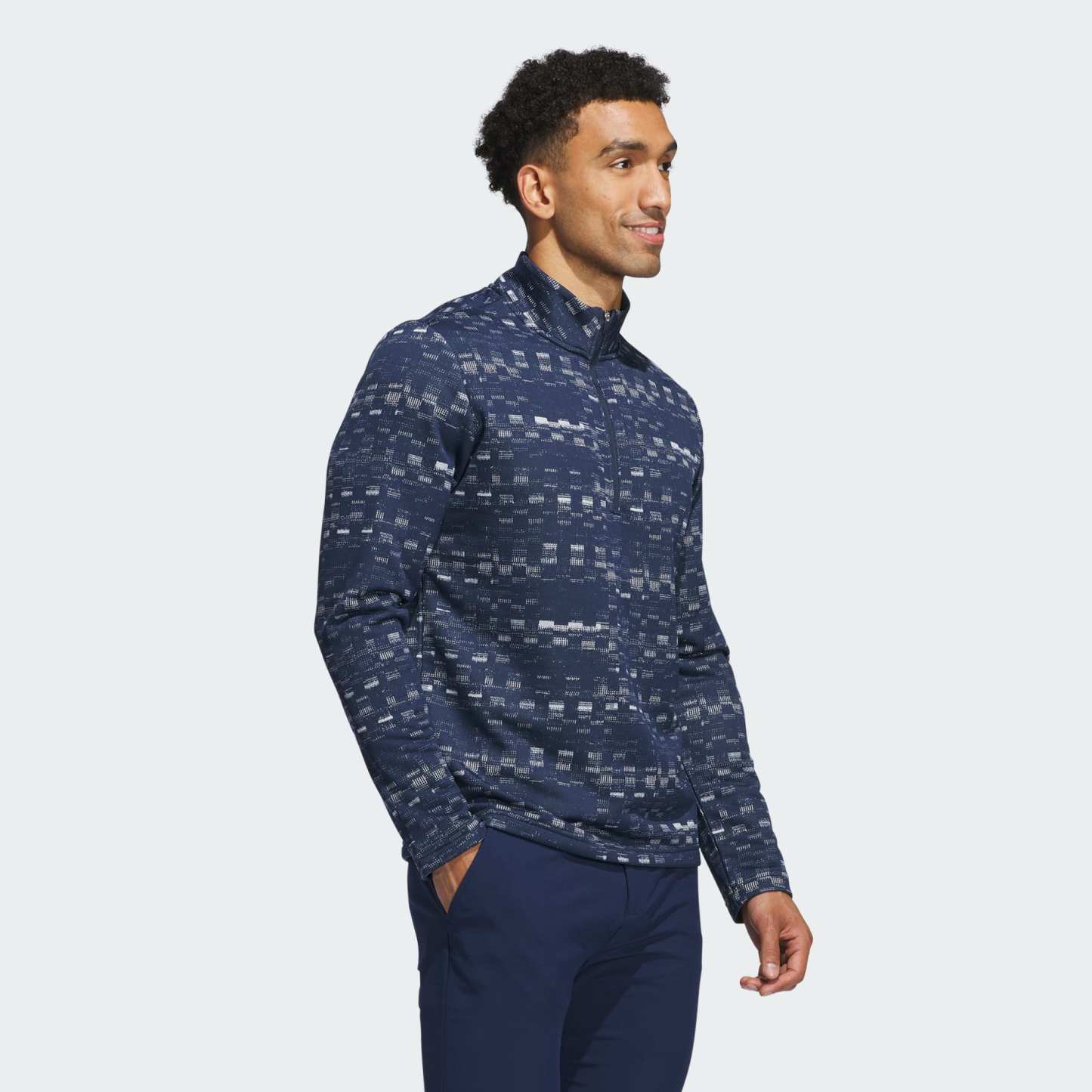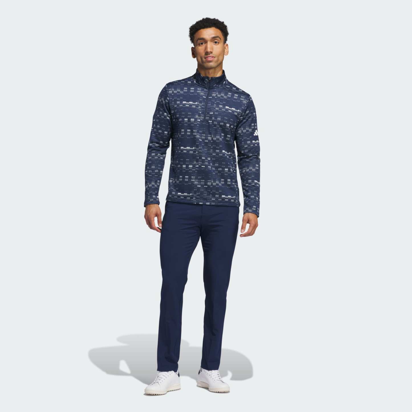 For easy-wearing comfort on the course and smooth transitions to the clubhouse and beyond, reach for this adithtdas golf pullover. Soft French terry has just the right stretch for mobility, and a mock neck offers extra coverage. A clean silhouette and allover print deliver all-day wearability.