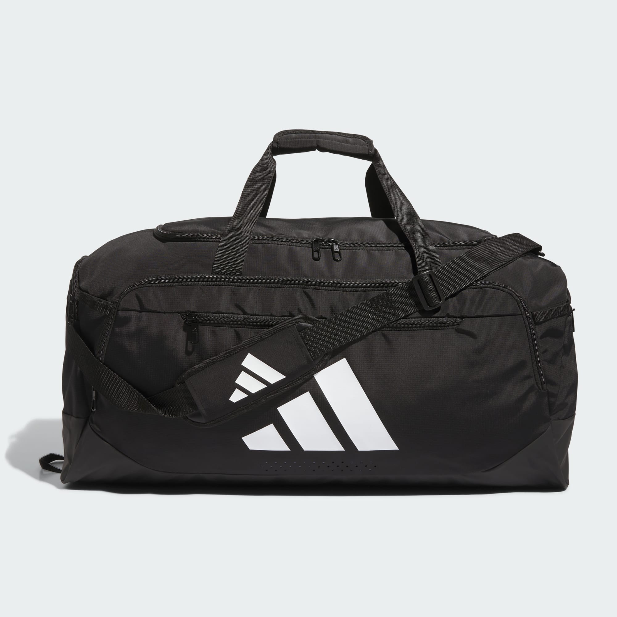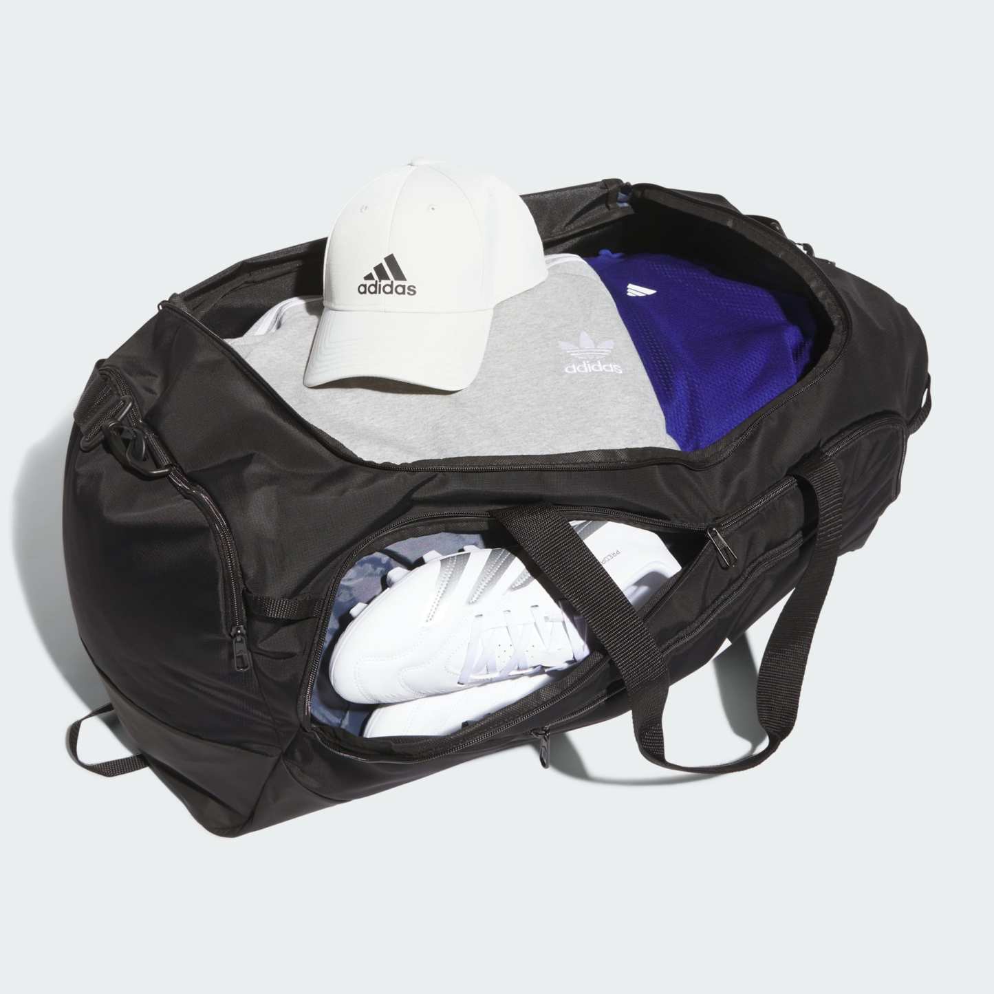 This large all-purpose duffel bag keeps athletic gear, apparel and accessories organized and easy to access. Its travel-ready design includes durable fabric with a water-resistant base to keep stuff dry and built-in webbing attachments where you can clip stuff like keys or a water bottle. It has a large main storage area plus multiple zip pockets, including a ventilated pocket to air out dirty gear.