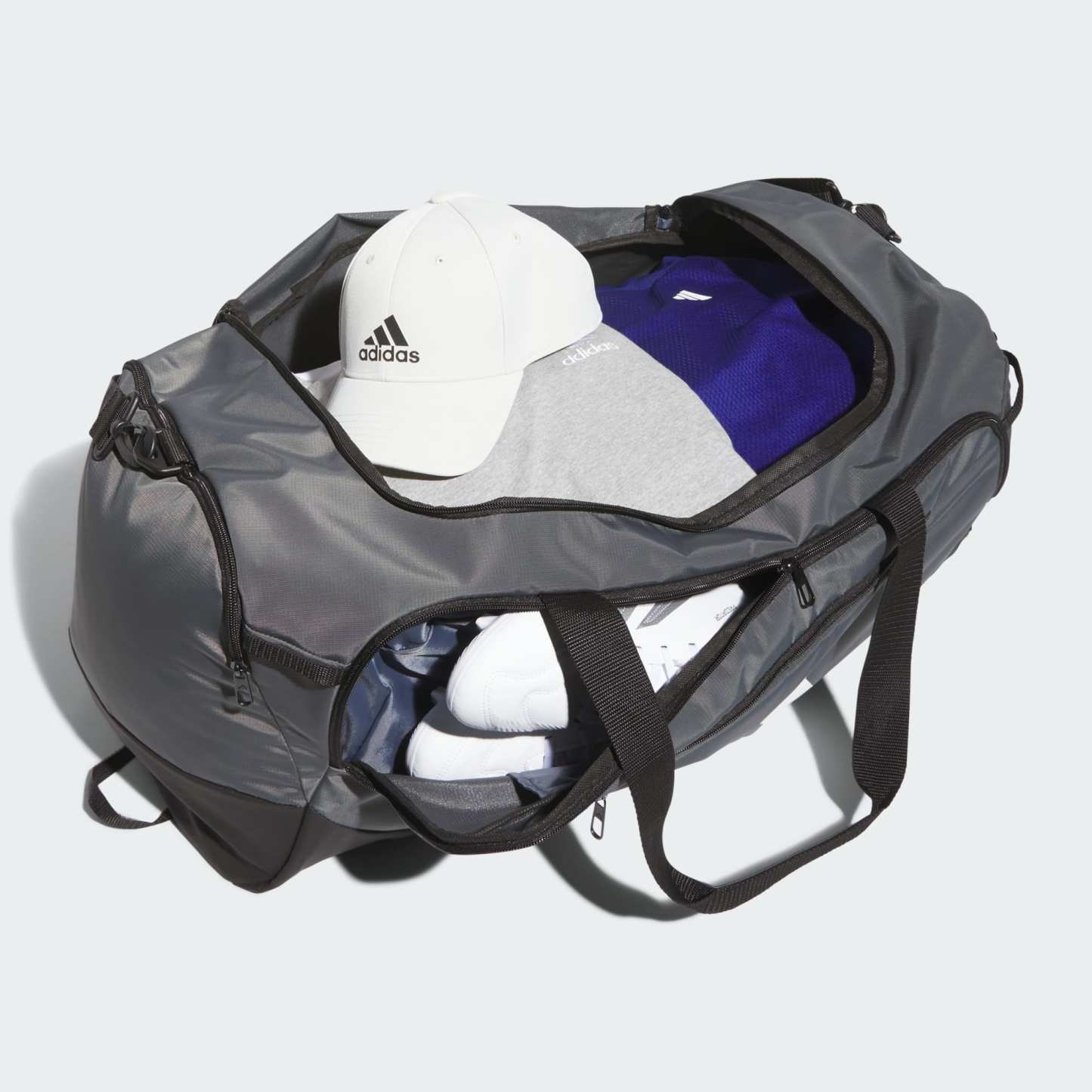 This large all-purpose duffel bag keeps athletic gear, apparel and accessories organized and easy to access. Its travel-ready design includes durable fabric with a water-resistant base to keep stuff dry and built-in webbing attachments where you can clip stuff like keys or a water bottle. It has a large main storage area plus multiple zip pockets, including a ventilated pocket to air out dirty gear.
