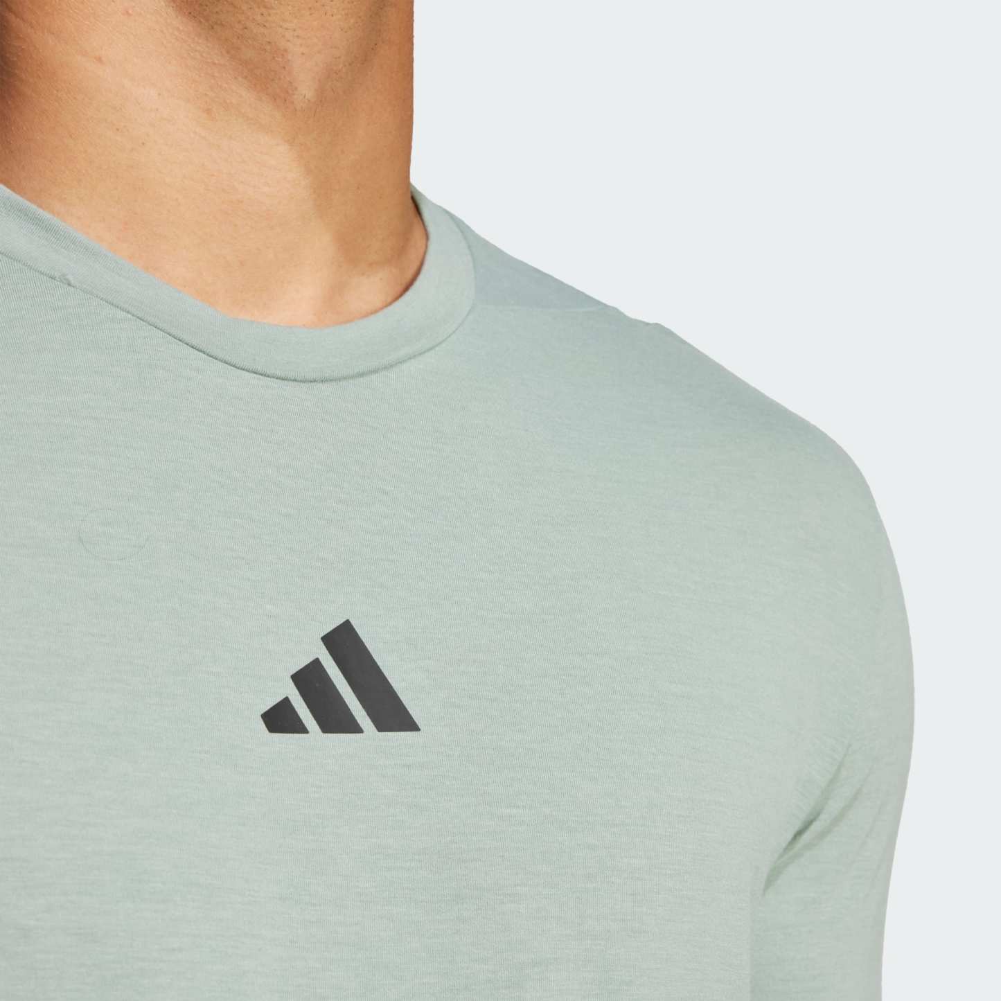 This adithtdas training tee is ready for everything from cardio to weights. No matter how intense the workout, you'll stay dry and focused thanks to AEROREADY technology that wicks away moisture. The slim fit lets you move confidently through every push up and overhead press. This product is made with at least 70% recycled materials. By reusing materials that have already been created, we help to reduce waste and our reliance on finite resources and reduce the footprint of the products we make.