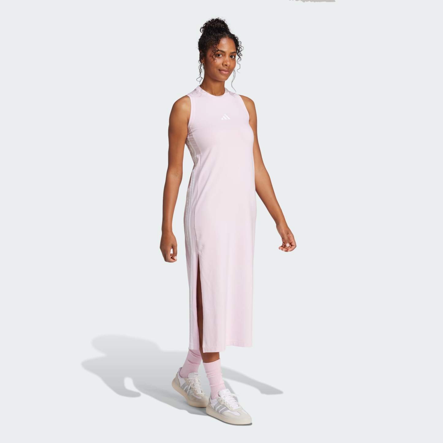 A sleek and stretchy maxi dress with 3-Stripes pride.