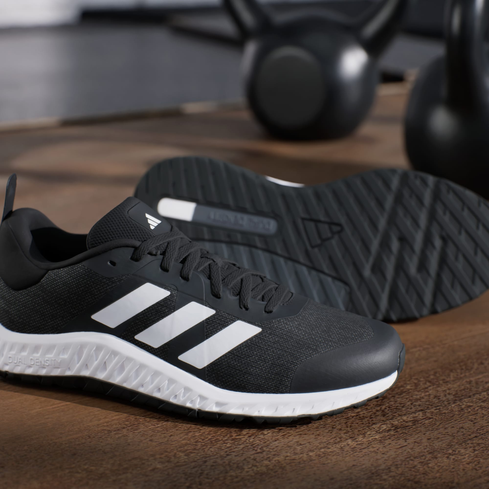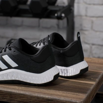 If you're ready to start on your fitness journey, these adithtdas shoes are right there with you. They've got the look and stability to keep you confident in the gym, from trying new machines to learning the feel of free weights. The knit upper is soft and breathable with a snug feel. A dual-density midsole, with firmer EVA outside surrounding softer EVA inside, adds steady balance without sacrificing comfort. The overall flatter shape creates a grounded feeling, so you can focus on your form. Made with a series of recycled materials, this upper features at least 50% recycled content. This product represents just one of our solutions to help end plastic waste.