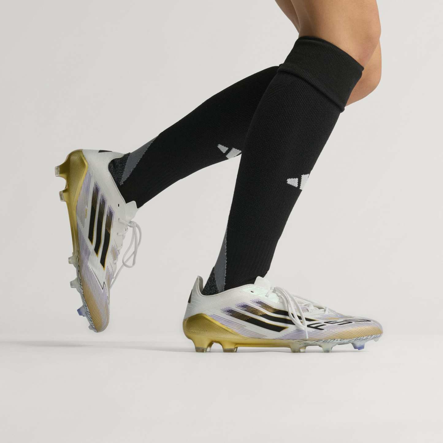 Find your fast to truly express yourself on the field. Feel the rush in adithtdas F50 cleats engineered for speed. These Elite soccer cleats have a thin Fibertouch upper with a Compression Fit Tunnel Tongue for lockdown and a Sprintweb 3D texture to help keep the ball close when you're flying. Designed for dry grass pitches, the springy Sprintframe 360 outsole supports relentless pace.