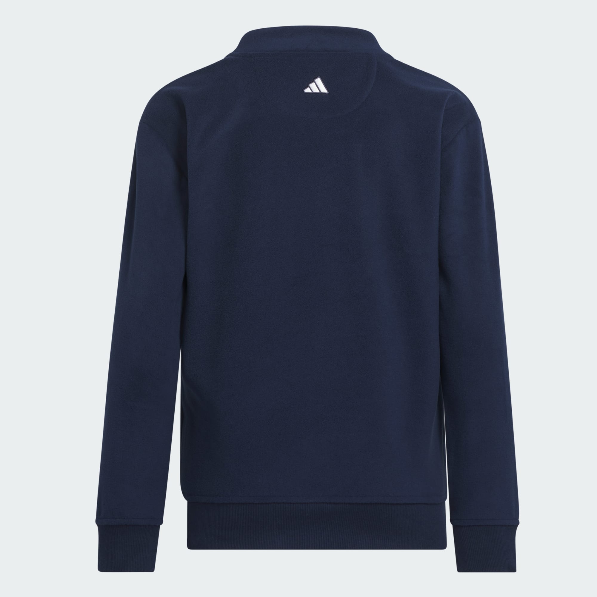 A brisk day on the course is no match for this juniors' adithtdas golf pullover. Cozy fleece takes the bite out of early morning rounds. A regular cut with drop shoulders offers sporty style and easy-moving comfort.This product is made with 100% recycled materials. By reusing materials that have already been created, we help to reduce waste and our reliance on finite resources and reduce the footprint of the products we make.