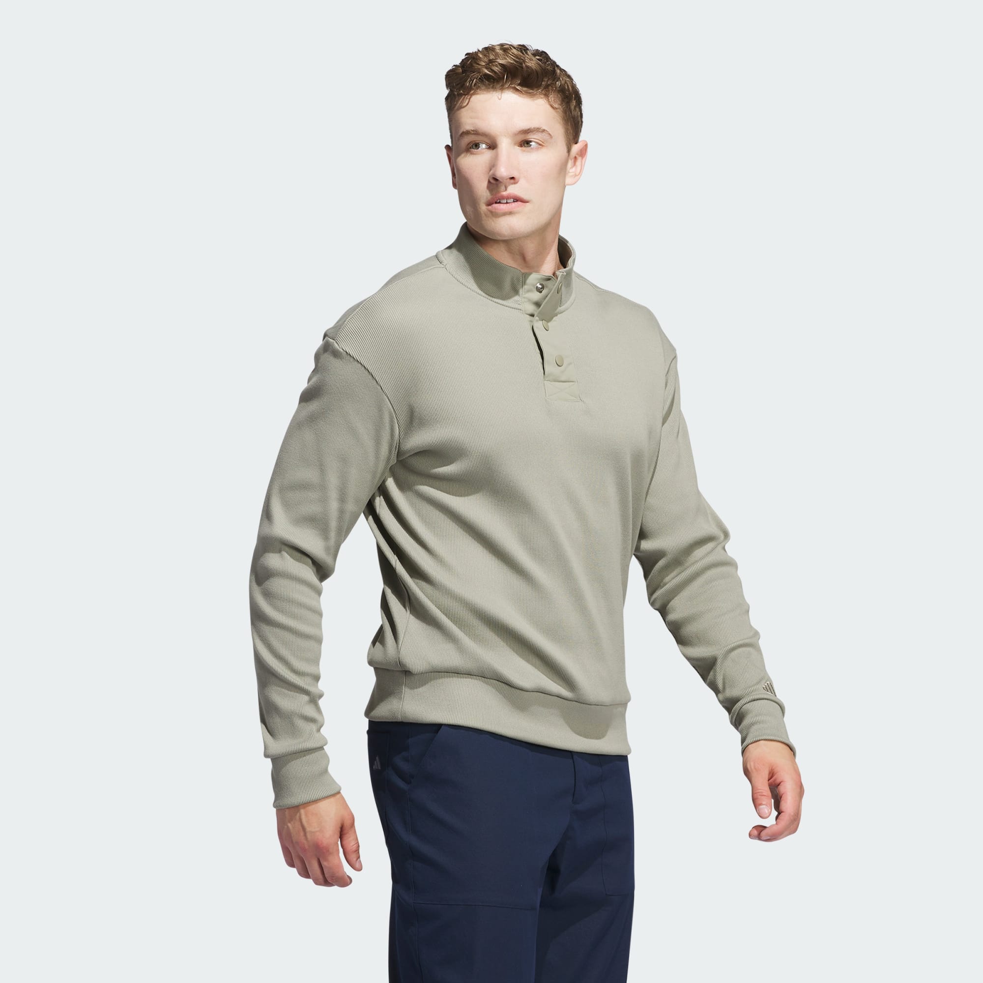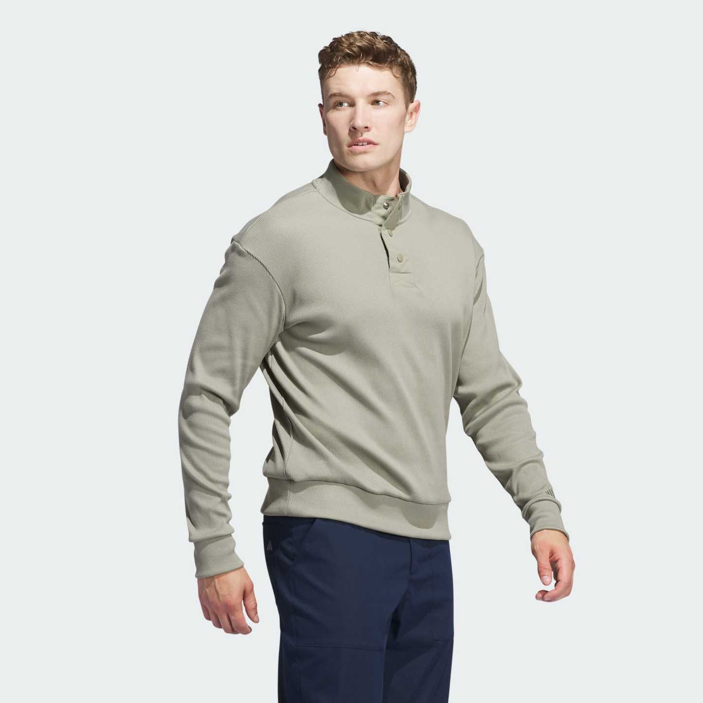 Got post-round plans? This adithtdas golf pullover is up for anything. It keeps you Cozy through your late-afternoon round and looks casually cool when you head out with your crew afterwards. The stretchy fabric is slightly peached for heat-retention, while drop shoulders make it easy to nail those long drives. A three-snap collar finishes the look.