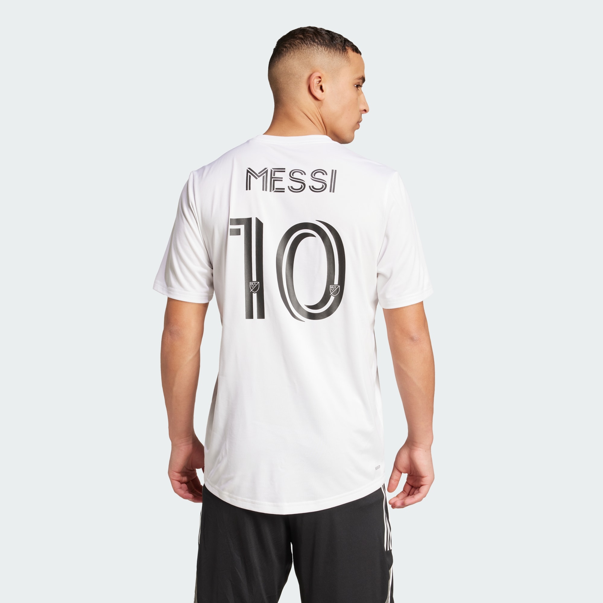 Highlight your pride in the GOAT. Decked in the team's black away colors, this adithtdas Inter Miami CF jersey is a pared-back version of the ones the players wear on the field. Standing out in pink, a team crest sits proudly on the chest and Lionel Messi's name and number add a vibrant hit of superstar style on the back. Soft single jersey fabric ensures this top is always first pick from your soccer wardrobe.