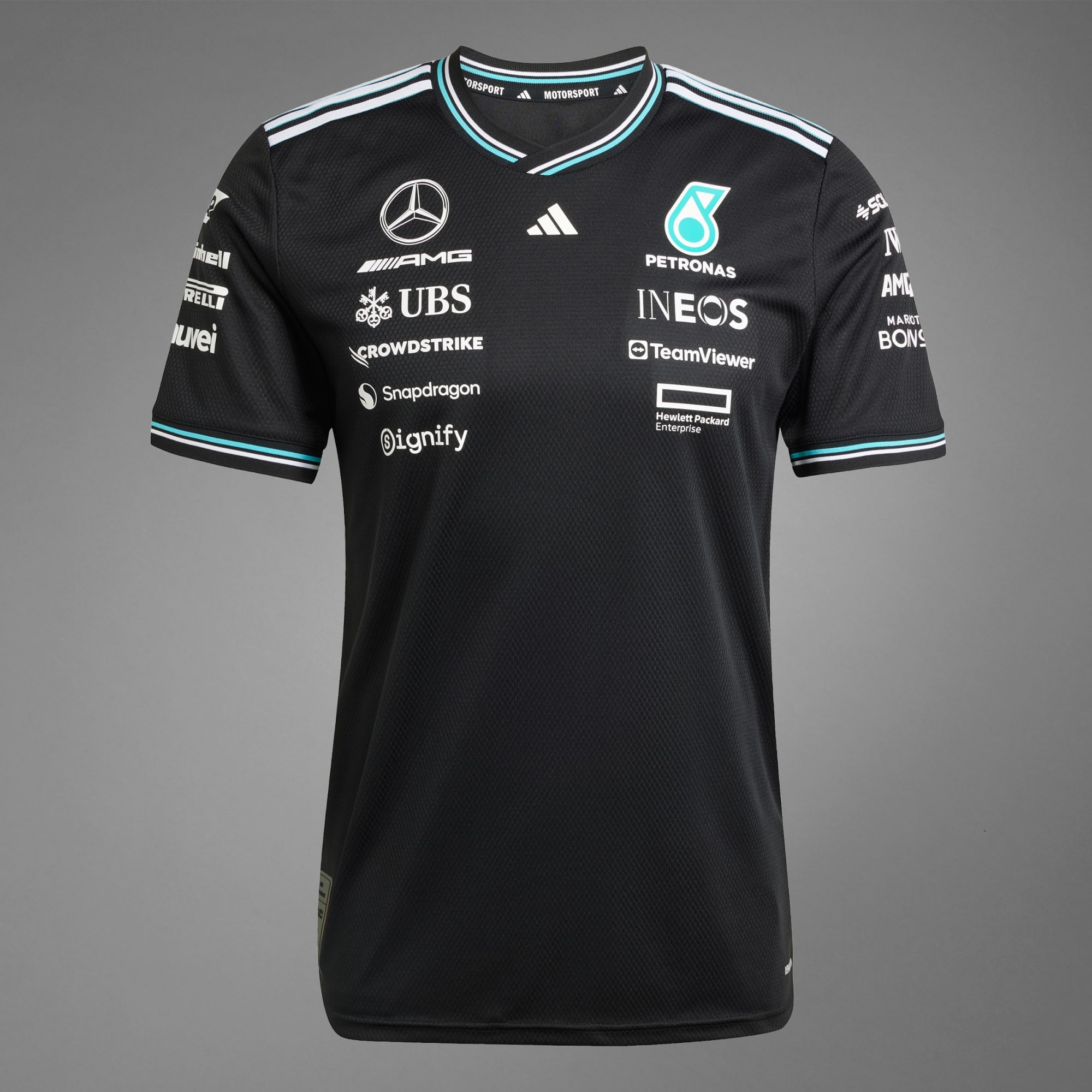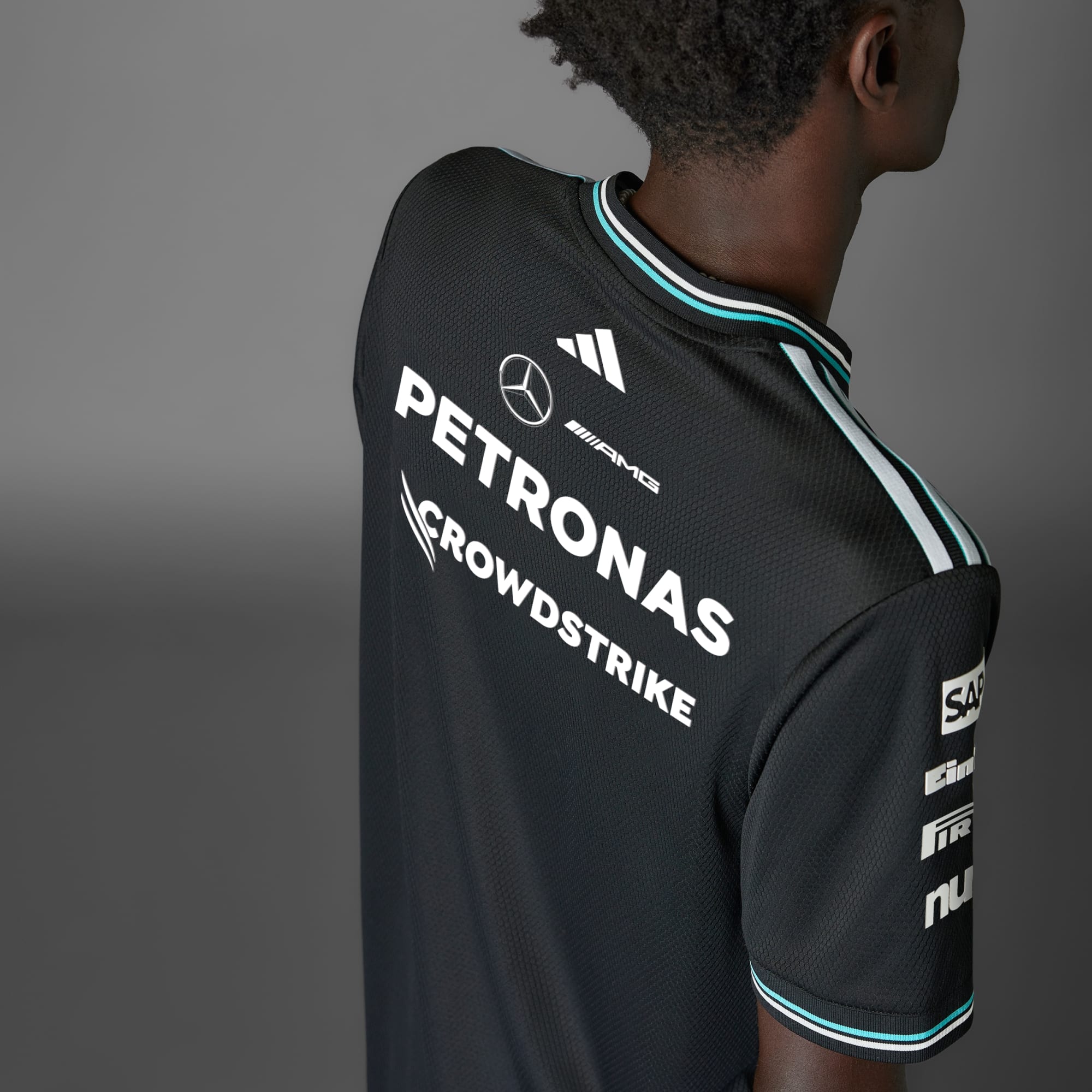 Look and feel like you're ready to take the wheel in this driver jersey from adithtdas. Built just like the ones worn on race day, this jersey features AEROREADY to manage moisture, providing both outstanding performance and elevated comfort. Mercedes - AMG Petronas Formula One Team logo branding and sponsor logos make the look authentic, while 3-Stripes on the shoulders and the 3 Bar Logo on the chest offer a signature adithtdas signoff.This product is made with 100% recycled materials. By reusing materials that have already been created, we help to reduce waste and our reliance on finite resources and reduce the footprint of the products we make.
