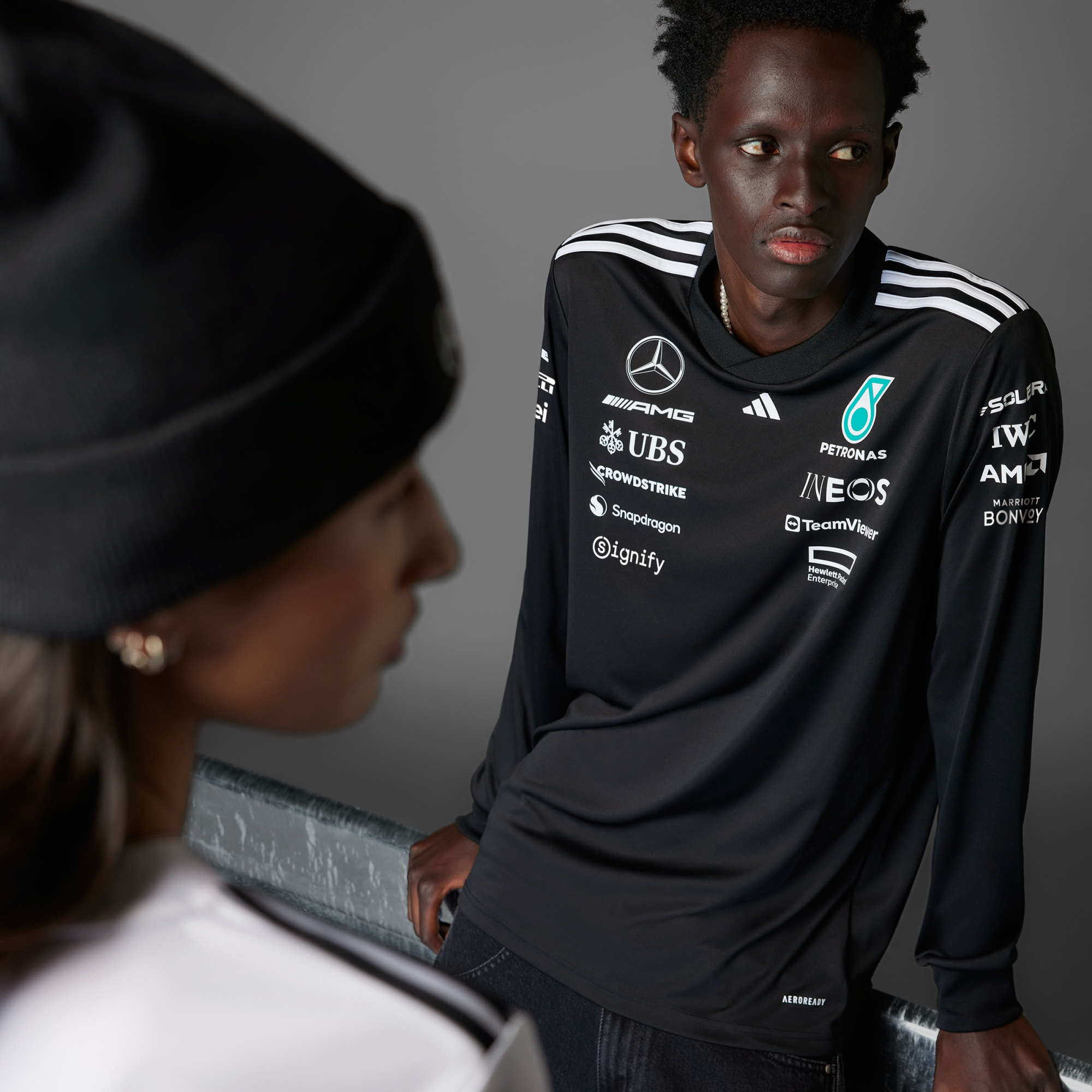 Bring the racetrack home with this sleek Mercedes - AMG Petronas Formula One Team jersey from adithtdas Motorsports. With its long sleeves and smooth interlock fabric, this top keeps you cool and comfortable whether you're watching the race from the stands or in your living room. The prominent team and sponsor logos on the front let everyone know which drivers you support while moisture-managing AEROREADY draws sweat away from your skin.This product is made with 100% recycled materials. By reusing materials that have already been created, we help to reduce waste and our reliance on finite resources and reduce the footprint of the products we make.