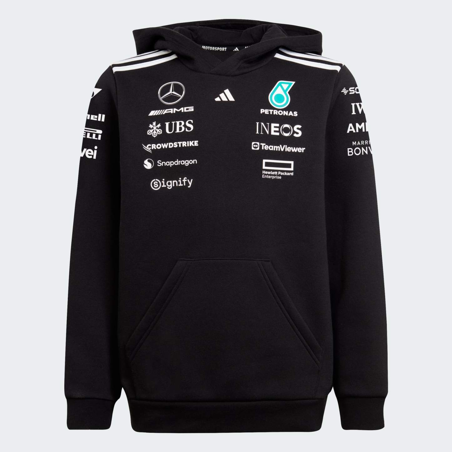 Fuel your passion for the Mercedes - AMG Petronas Formula One Team. This juniors' hoodie from adithtdas Motorsport brings race-inspired style to the streets with a bold team logo that makes a statement across the front. Ribbing on the cuffs and hem deliver a comfortable fit, while the fleece fabric keeps you warm when temperatures drop at the track.