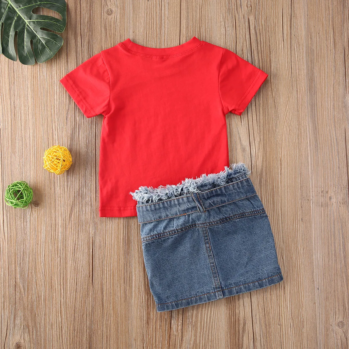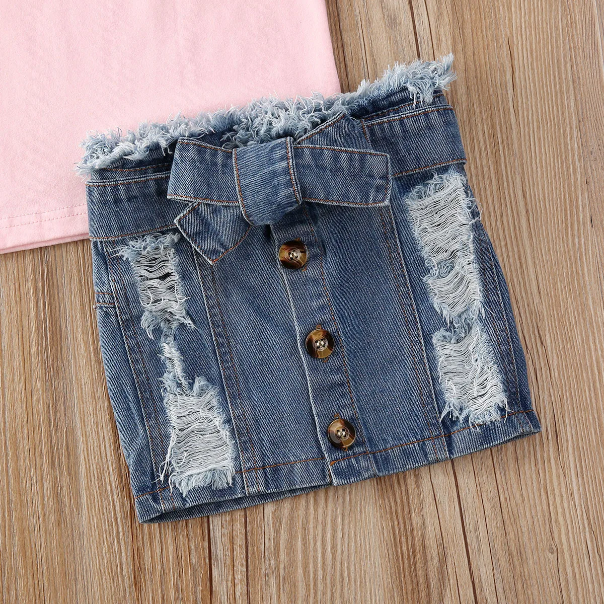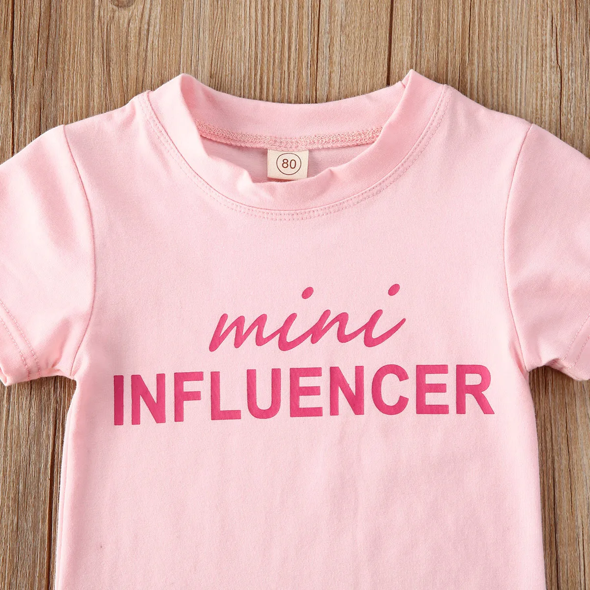 These short sleeve tee with a mini influencer statement comes with a set of denim short skirts. The denim mini skirt features a front button and a self-tie front. Why not wear this mini influencer denim dress outfit with pride and give your little one a pat on the back for being awesome.