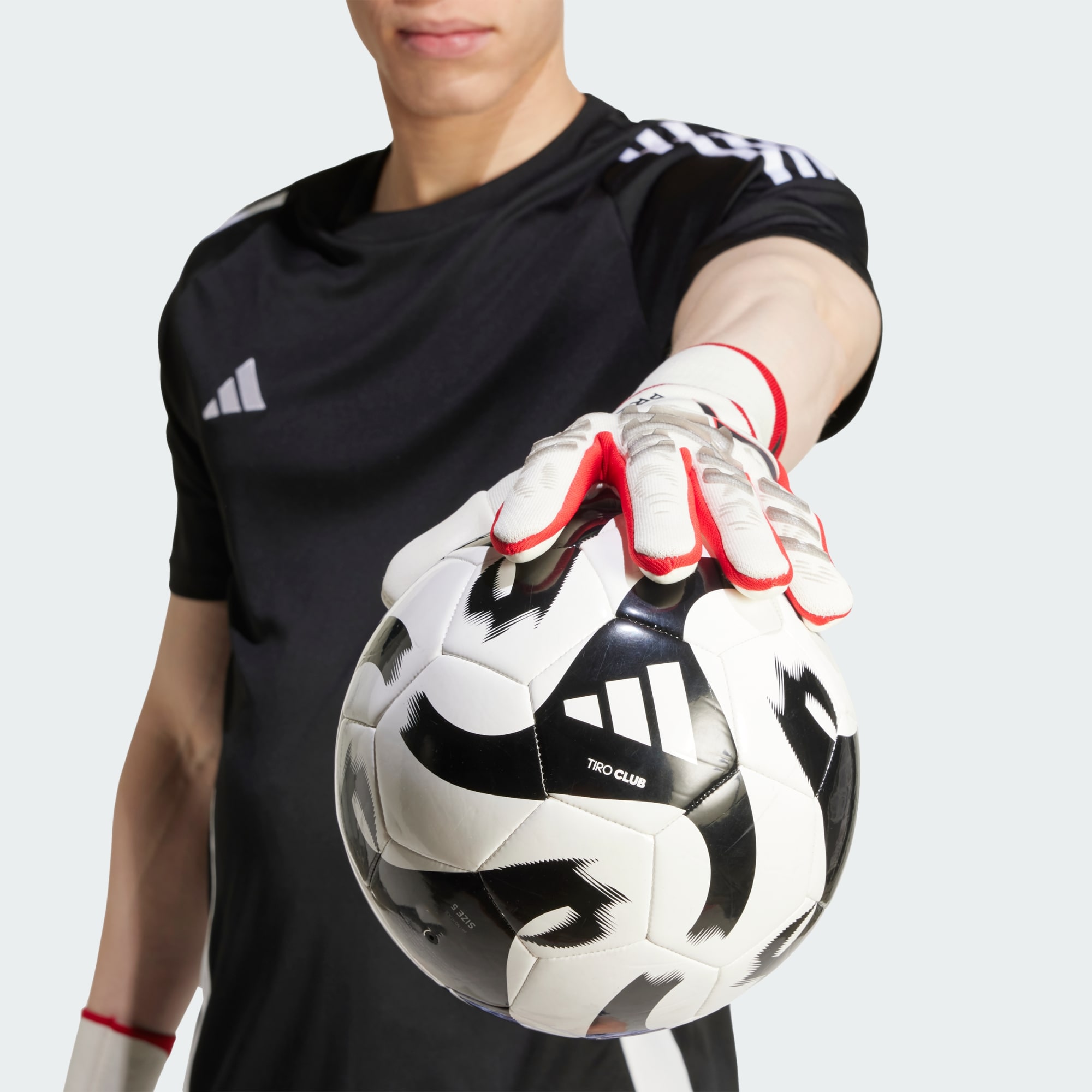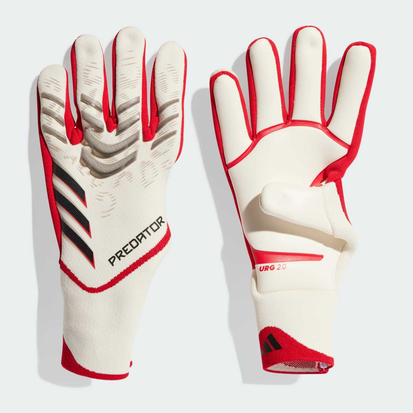 Get to the ball every time in these adithtdas Predator Pro goalkeeper gloves. With grippy URG 2.0 latex palms and a snug, negative finger cut, they're engineered for imperious match day performances. The adaptive knit backhand includes silicone elements for pinpoint punching, and a strapless entry provides a natural-feeling fit at the wrist.