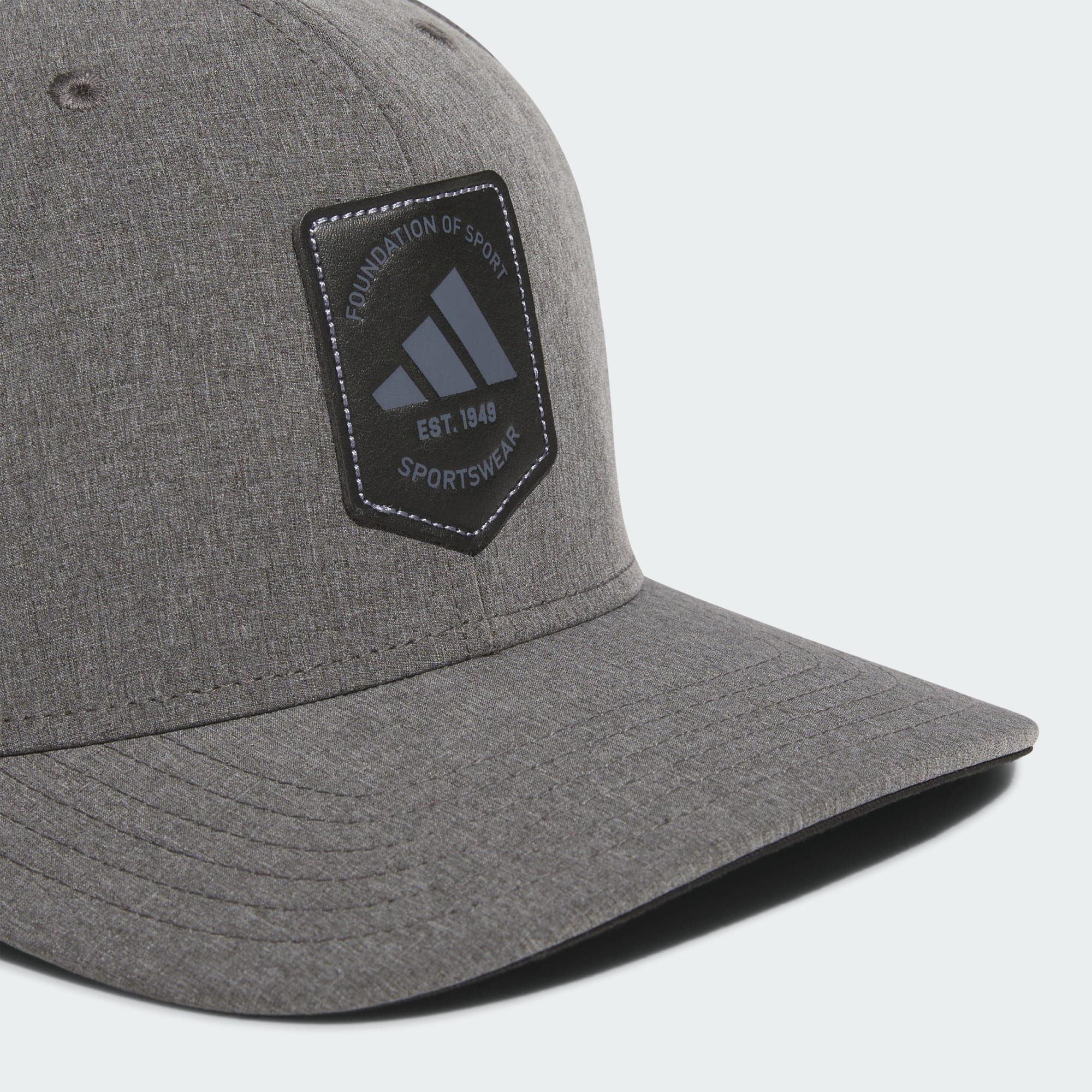 Classic shape meets endless versatility. This men's adithtdas snapback hat puts the finishing touch on your look with its structured six-panel crown and flat brim. It's made from heathered fabric with a polyurethane leather logo. Snaps in back let you adjust to find the perfect fit.
