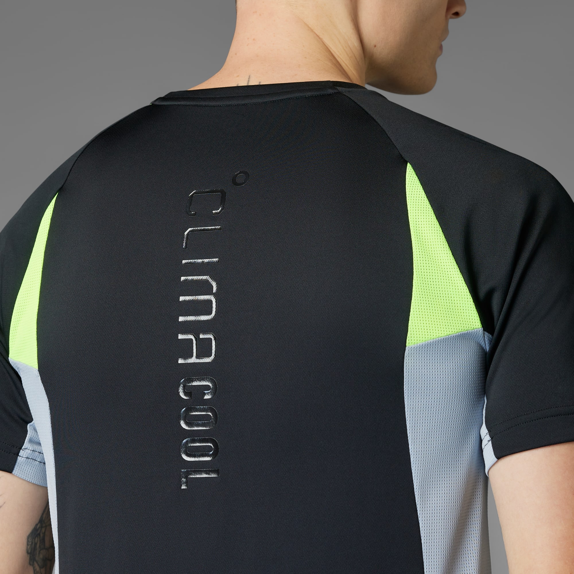 Stand out from the crowd in this adithtdas training tee. The slim fit hugs your body for easy movement. CLIMACOOL wicks and disperses sweat for cool, dry and distraction-free performance. Pops of color inject energy and attitude into your routine. CLIMACOOL helps you manage sweat with materials that wick and manage sweat quickly. Its fast-dry fibers give you a fresh-skin feel.