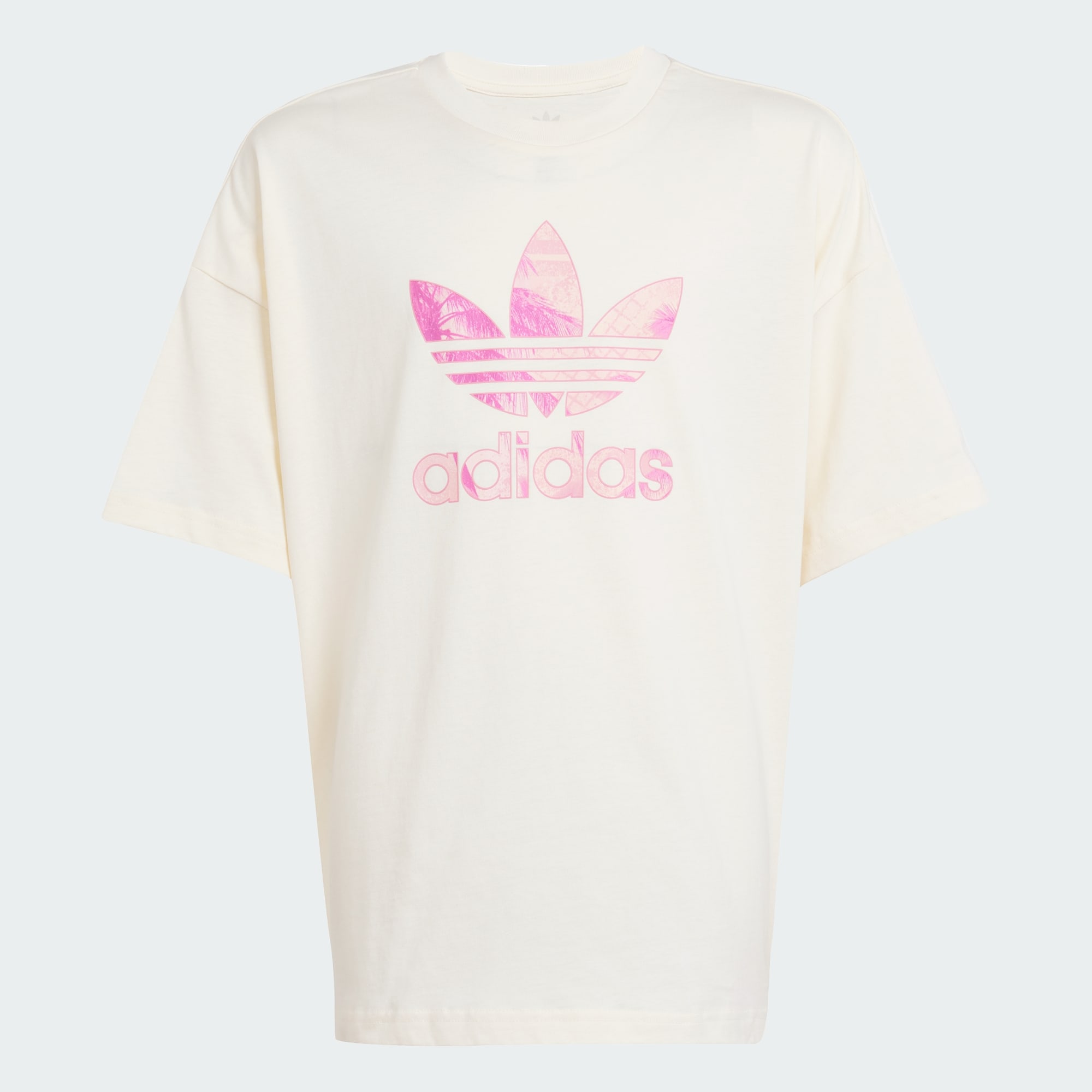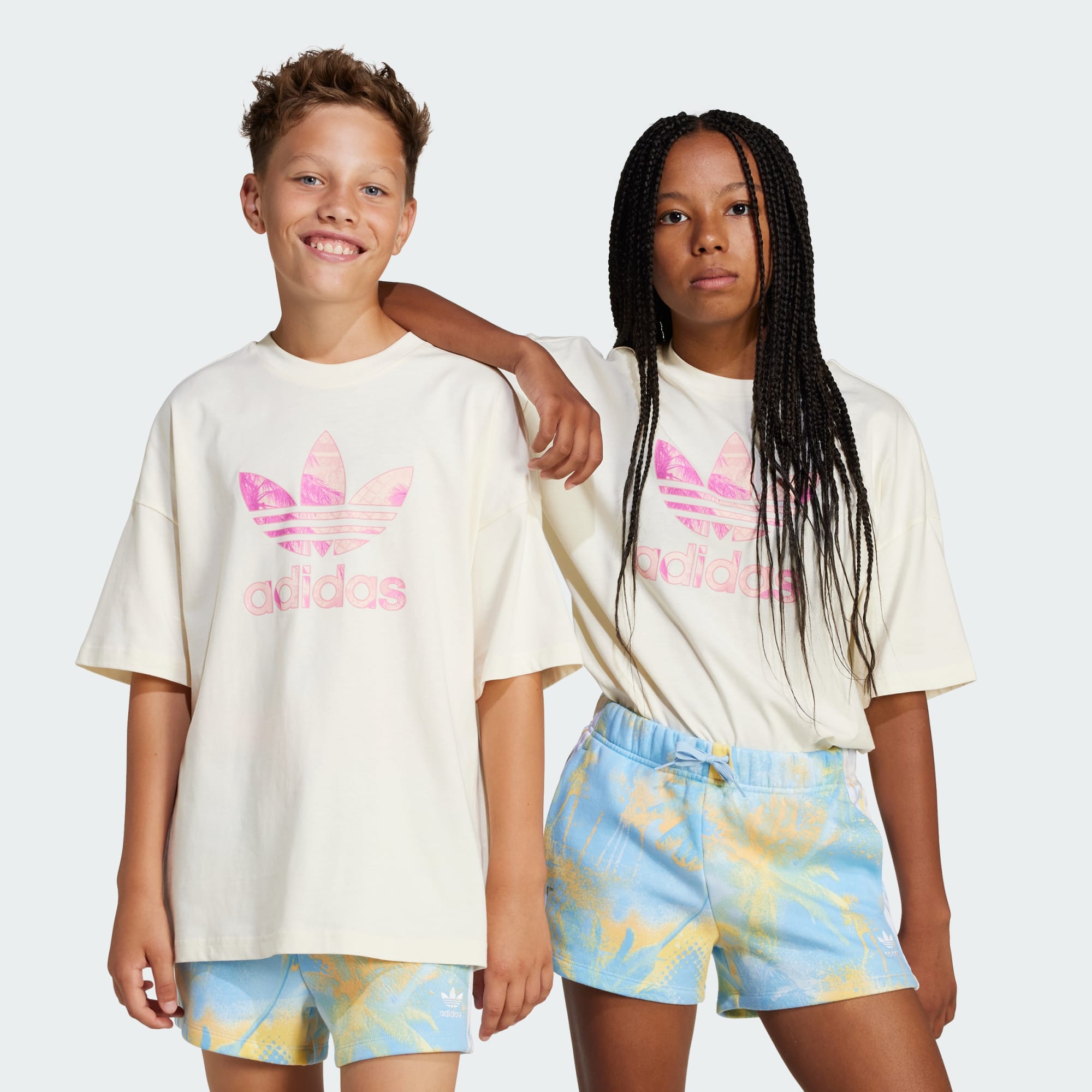 This juniors' tee from adithtdas is all about embracing the vibrant energy of summer. The front features a Trefoil logo filled with an '80s-inspired pattern in bright, sunny colors. The loose shape and single jersey fabric keep the look and feel easygoing. Whether you're kicking it at the beach or heading out for a sunset stroll, this shirt is your go-to for laid-back style.
