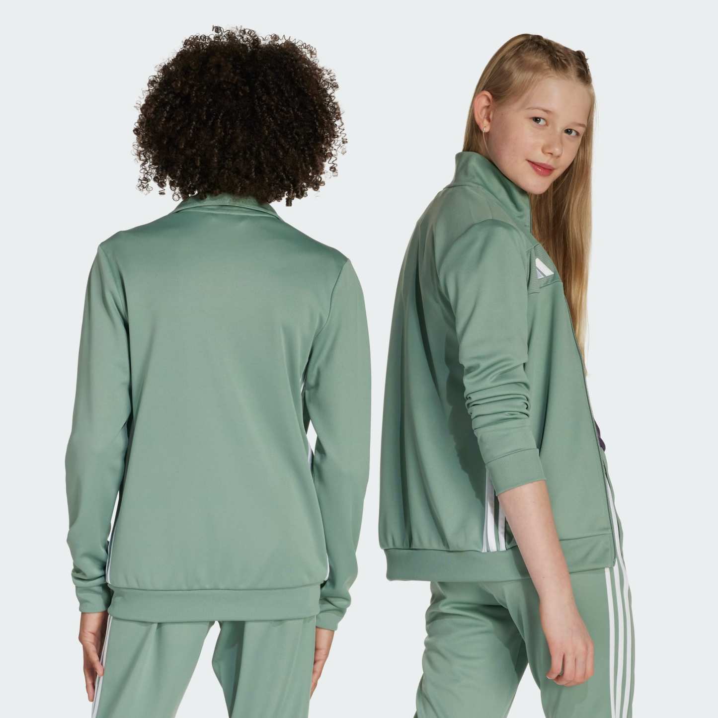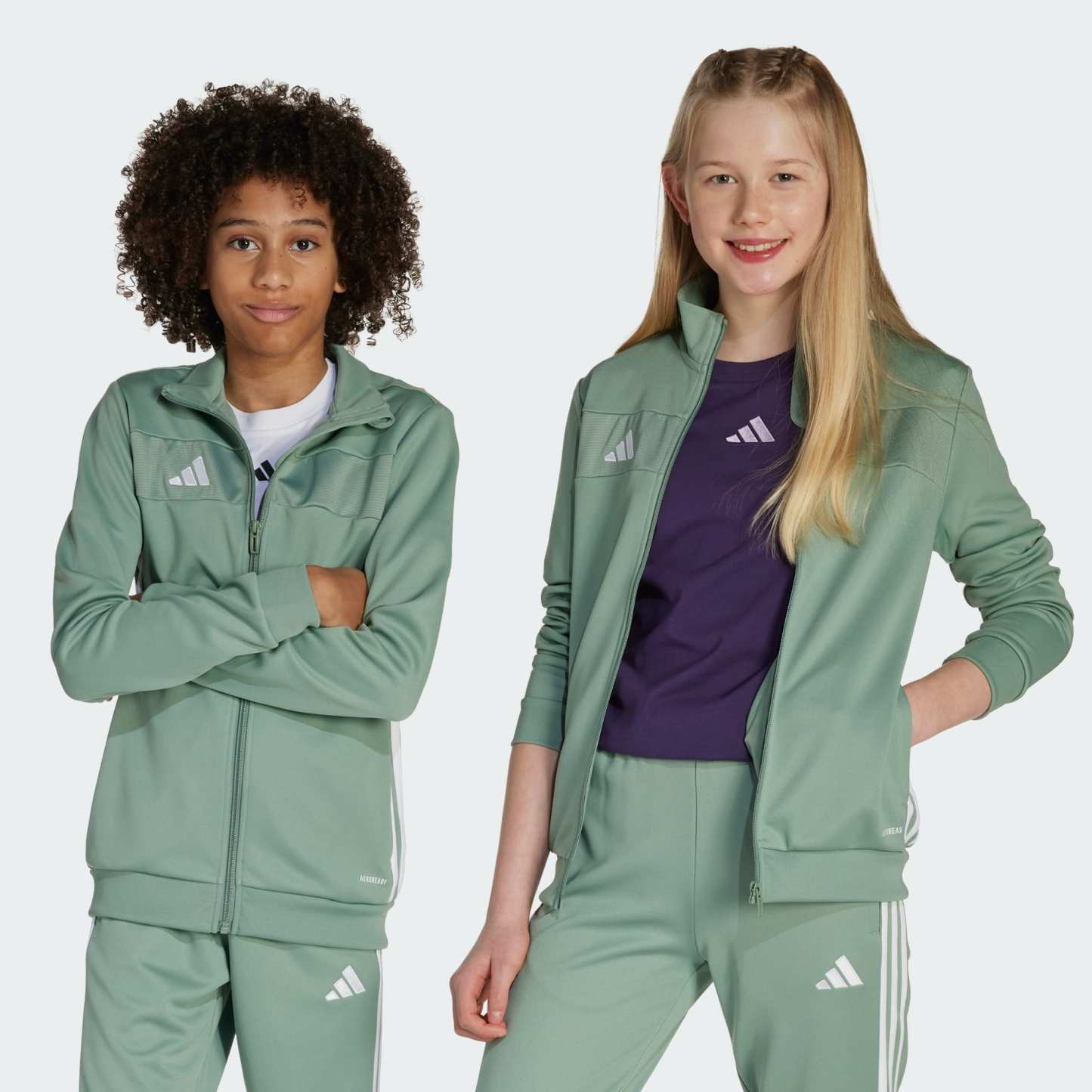 Bring your beautiful game everywhere you go. This juniors' Tiro 25 Essentials jacket from adithtdas takes its lead from soccer training apparel to offer a sporty look and comfortable feel. AEROREADY ensures you stay dry and focused when the pressure's on. That clean design transitions seamlessly from pitch to street.This product is made with 100% recycled materials. By reusing materials that have already been created, we help to reduce waste and our reliance on finite resources and reduce the footprint of the products we make.