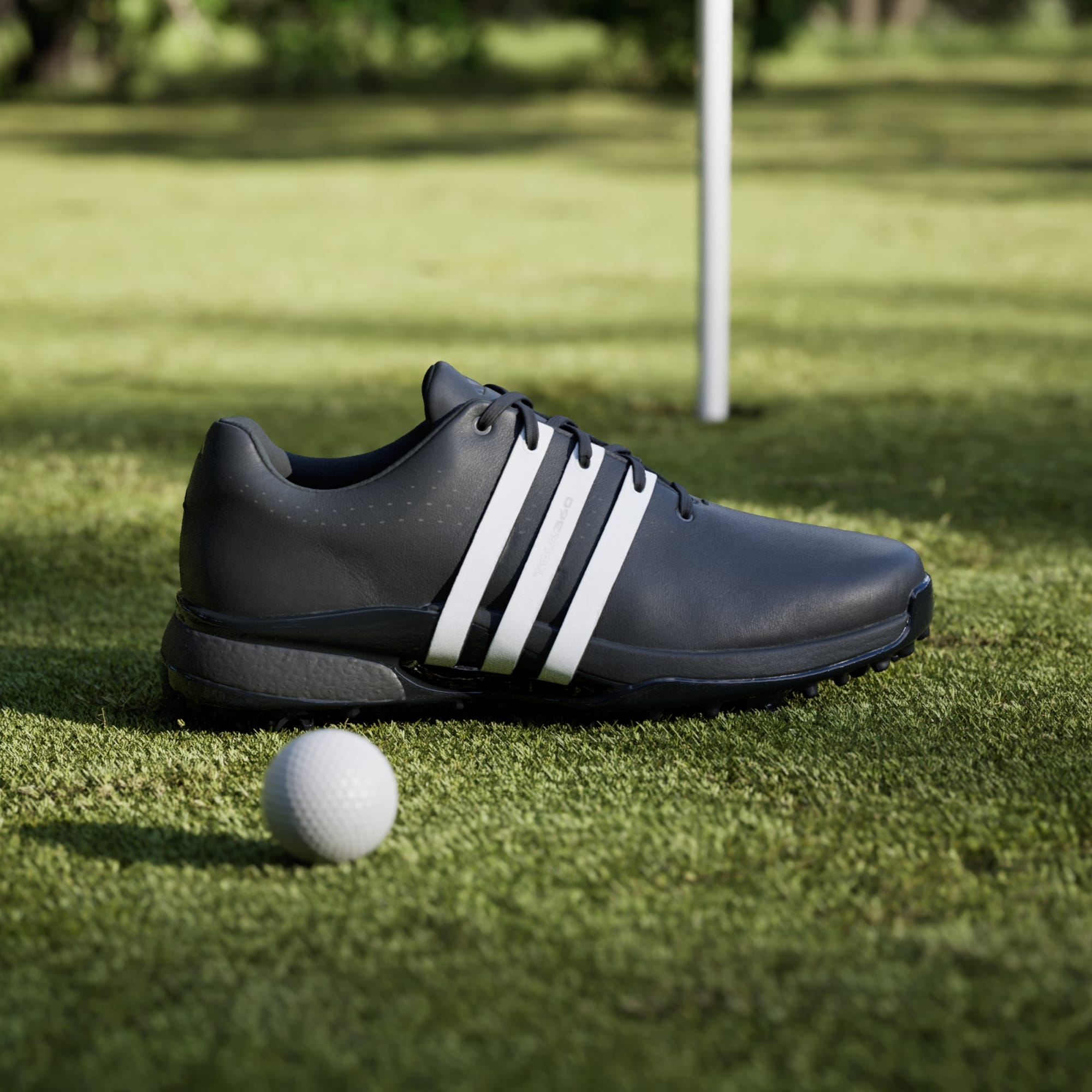 Feel your best. Play your best. Confidence and style come naturally in the adithtdas Tour360 24 BOOST Golf Shoes. Made for tournament play and dedicated golfers, they wrap your feet in premium materials and feature leading-edge footwear technology for elite-level performance. The waterproof leather upper features 360Wrap for enhanced hold and support. A combination of adithtdas Lightstrike cushioning and BOOST complement a Torsion Bridge stabiliser to energize every step and stabilizes every stance for powerful drives. Elevate your game with golf shoes that let you look and feel your best.