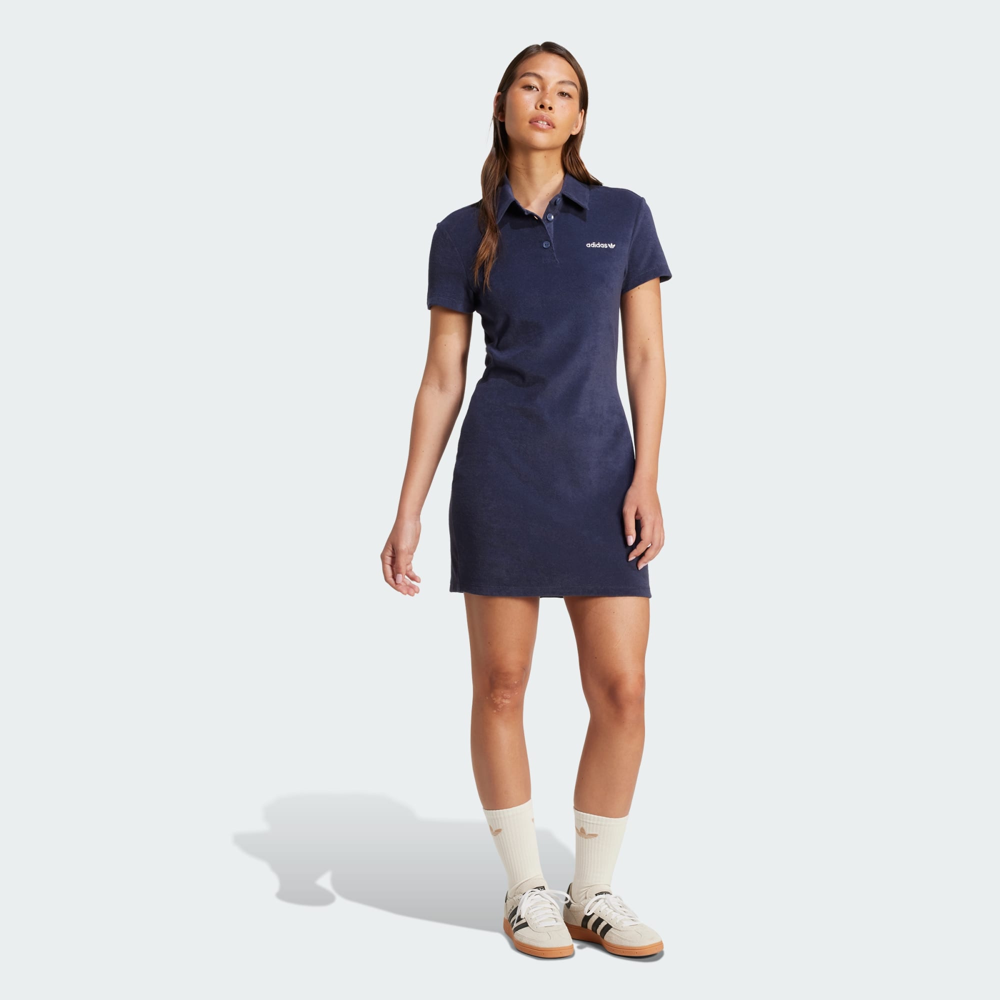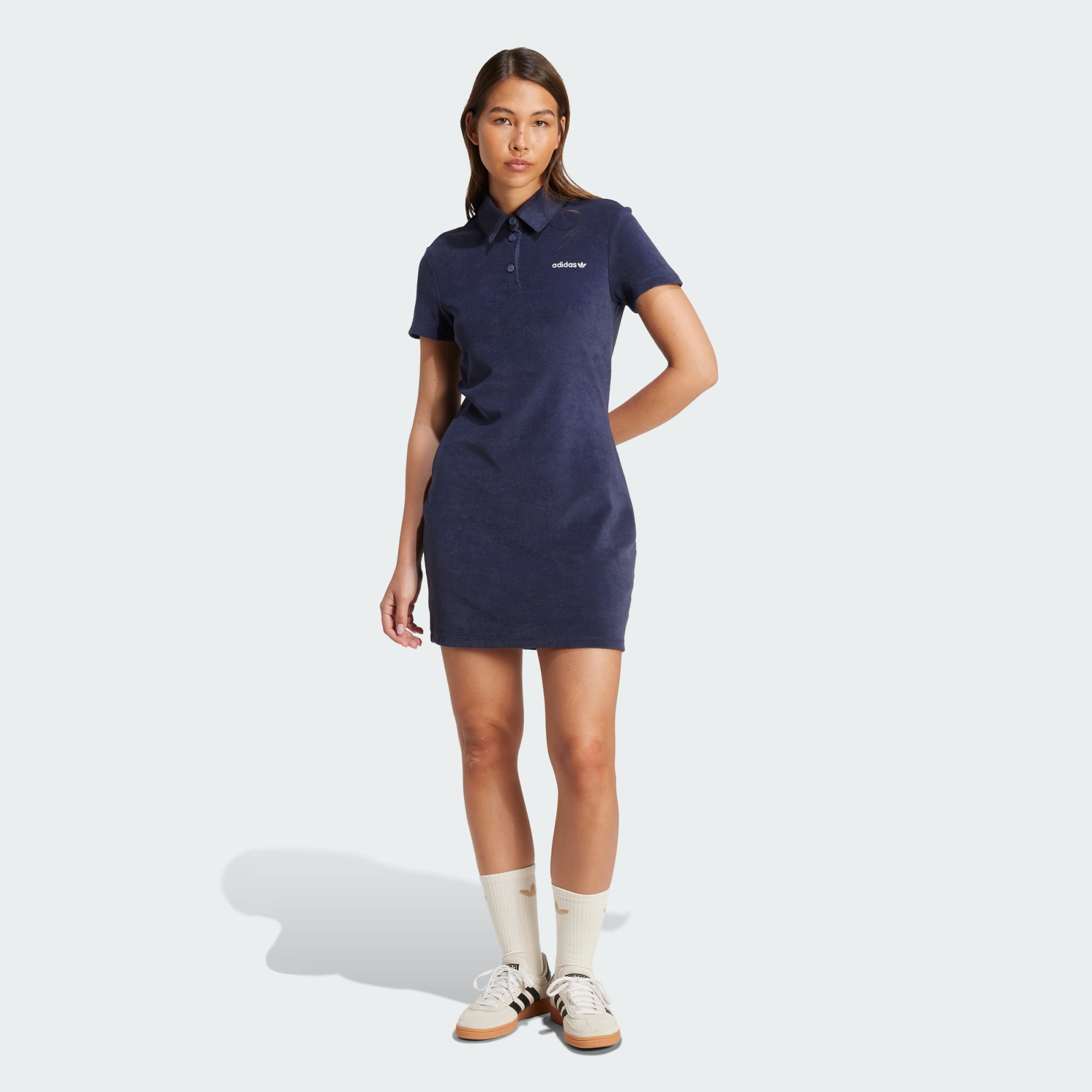 A polo dress made of soft towel fabric.