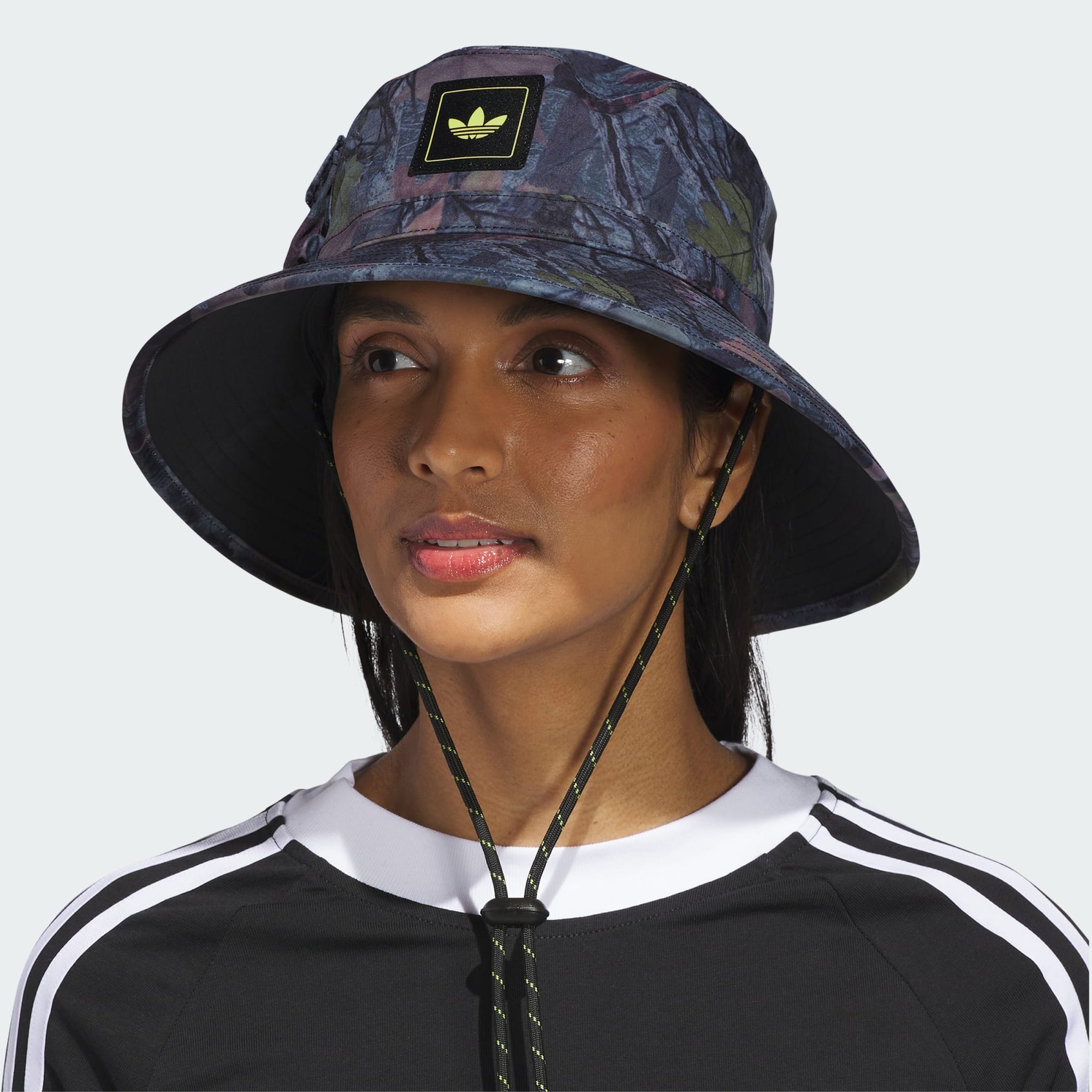 Whether exploring the city or out on one of nature's many wild getaways, this adithtdas camo boonie keeps you made in the shade. This version of the classic headwear has an extended brim and a little pocket on the side to stash something small. The chin strap adjusts with a sliding toggle.