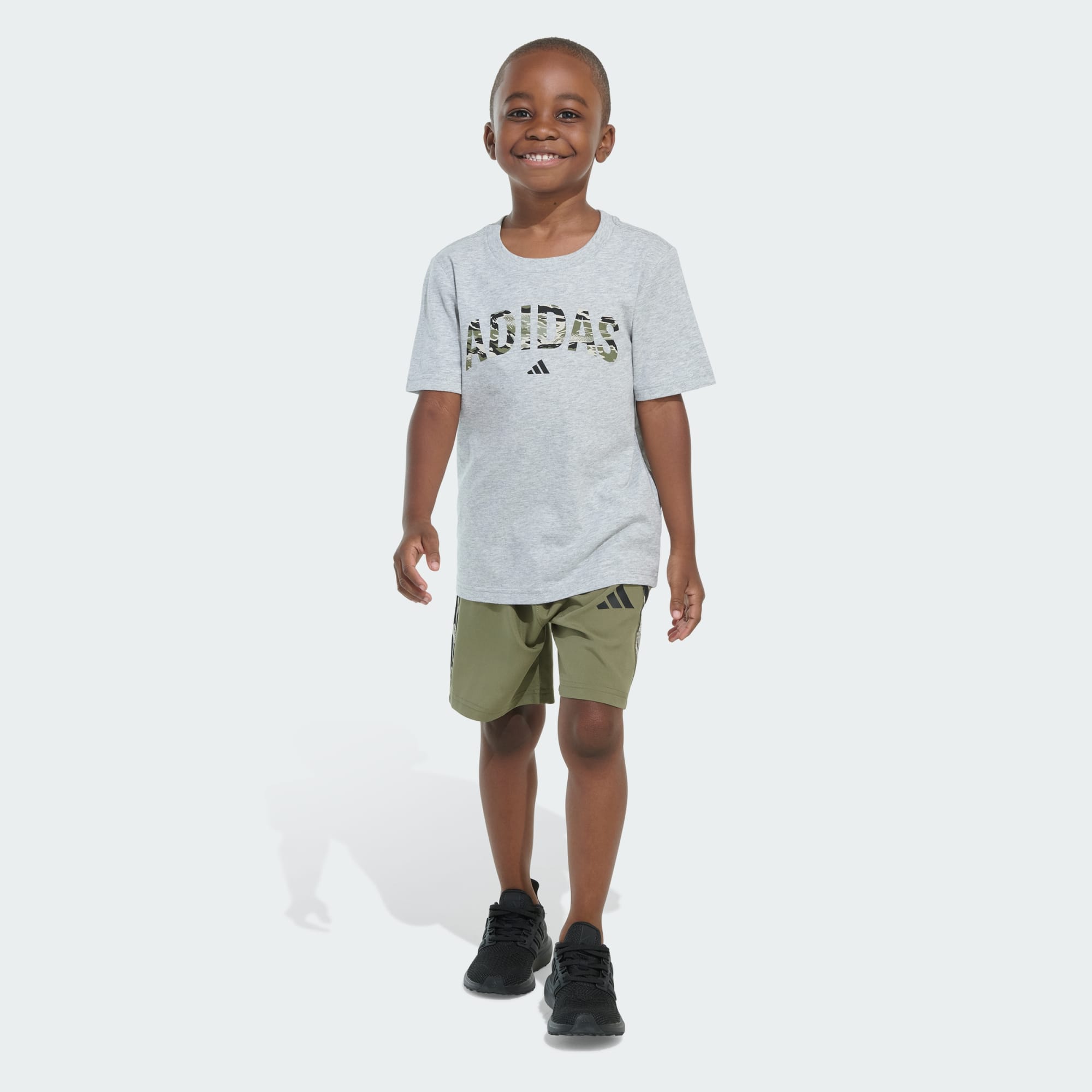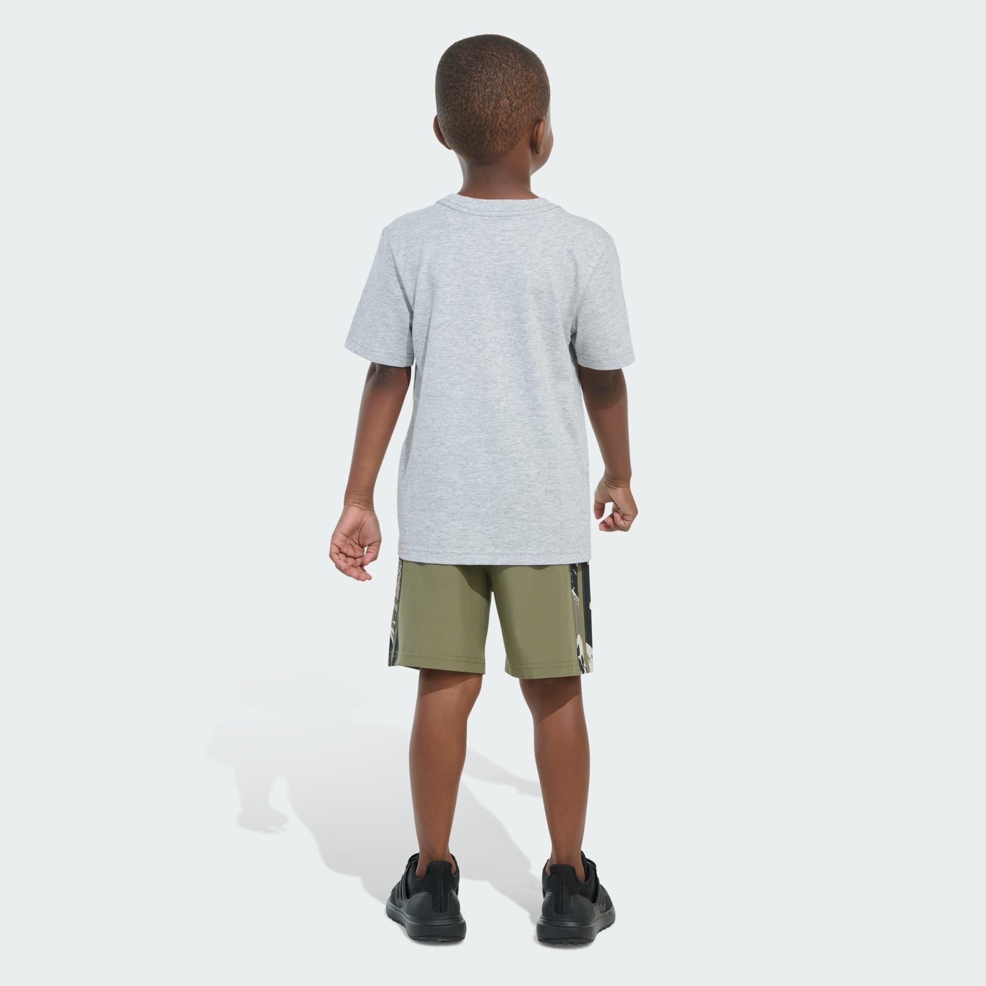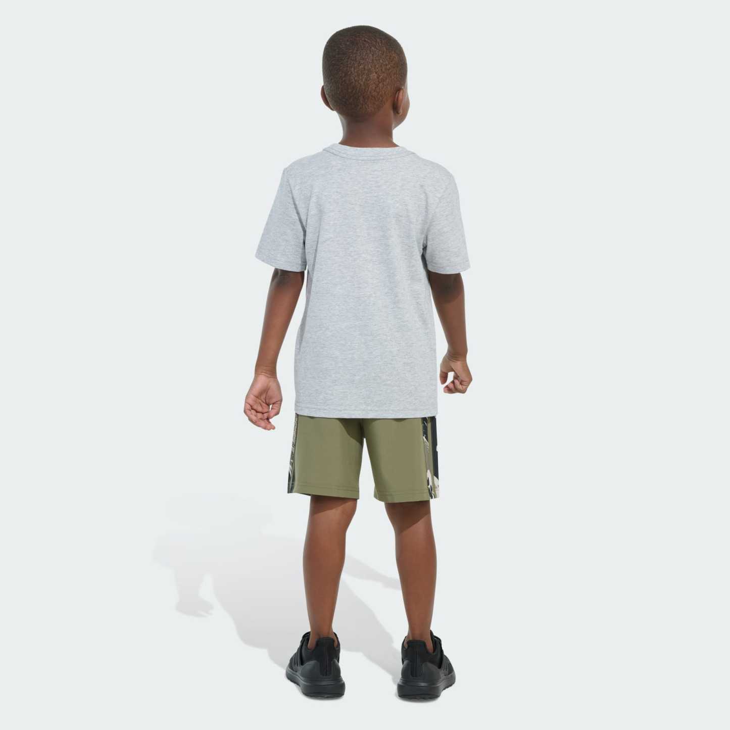 Two-Piece Short Sleeve Heather Tee and Camo 3-Stripes Woven Shorts Set