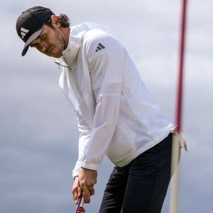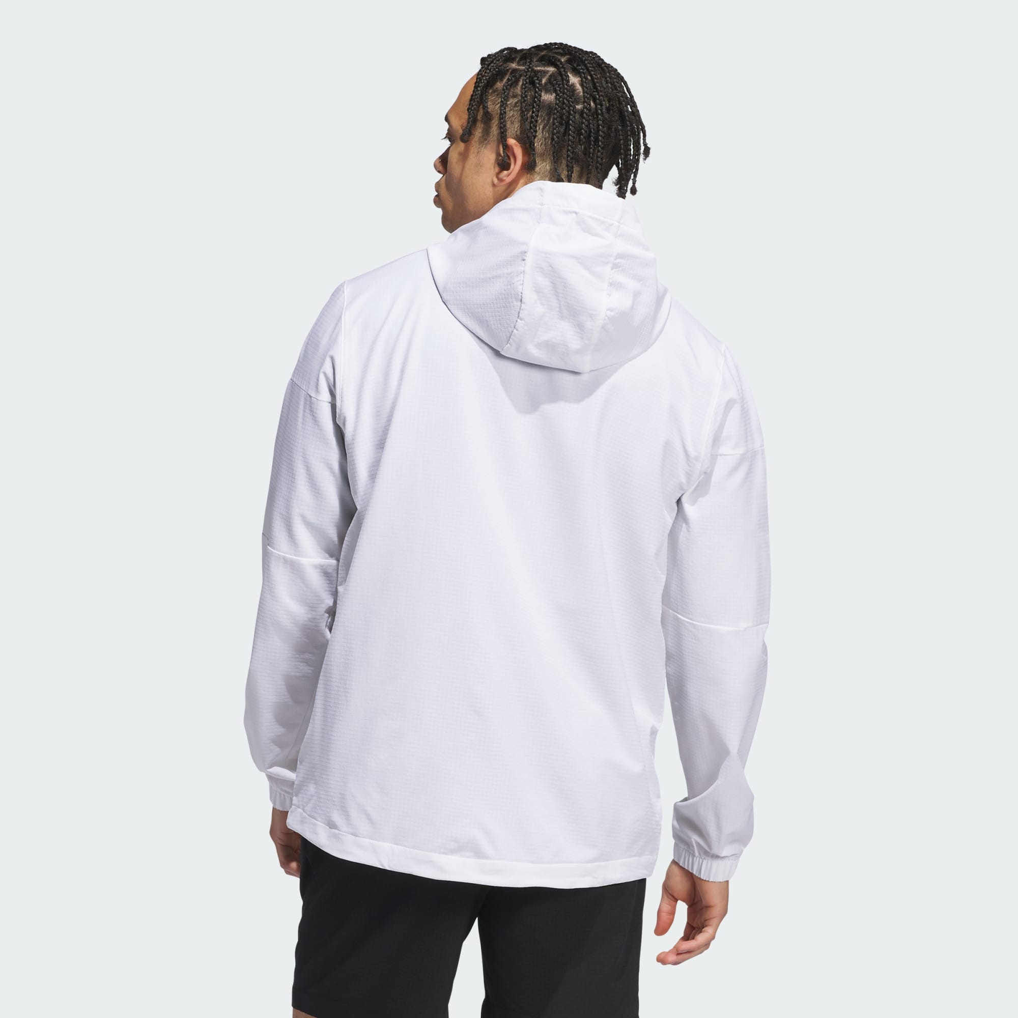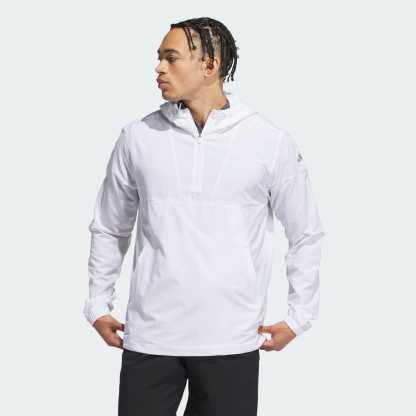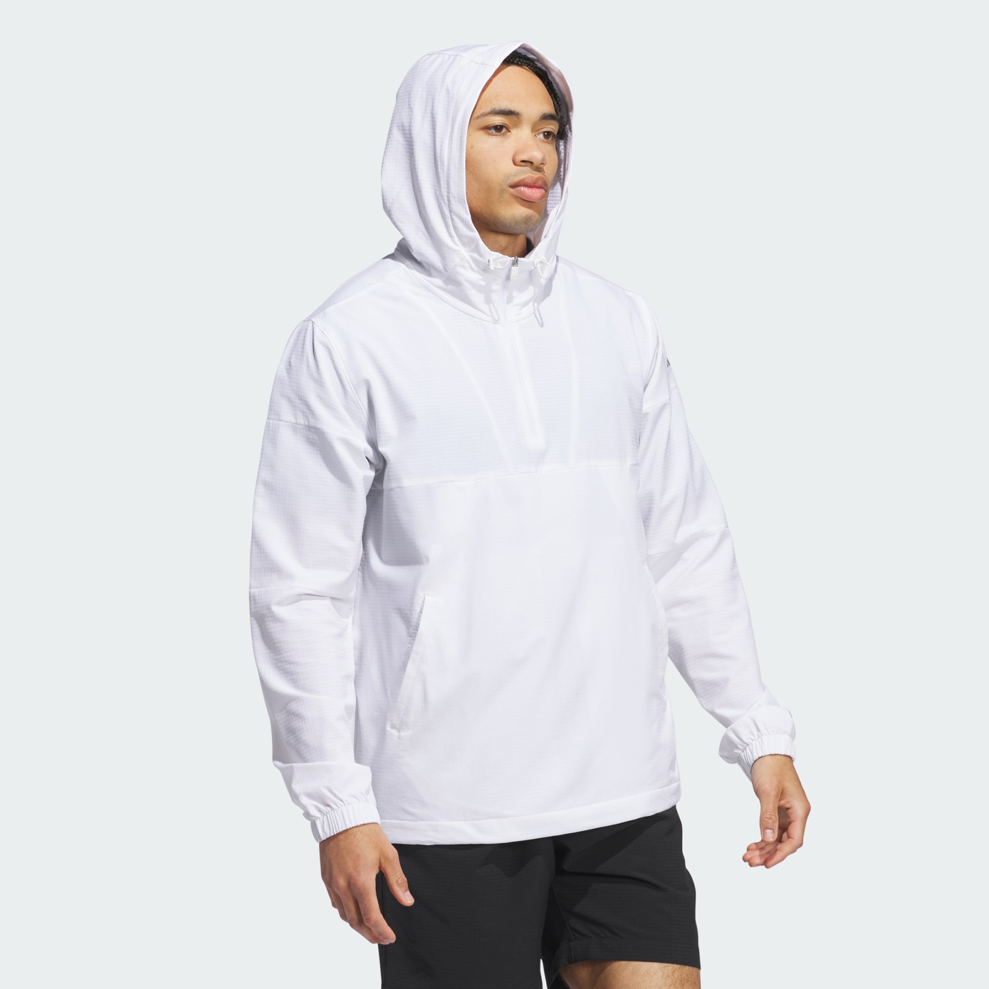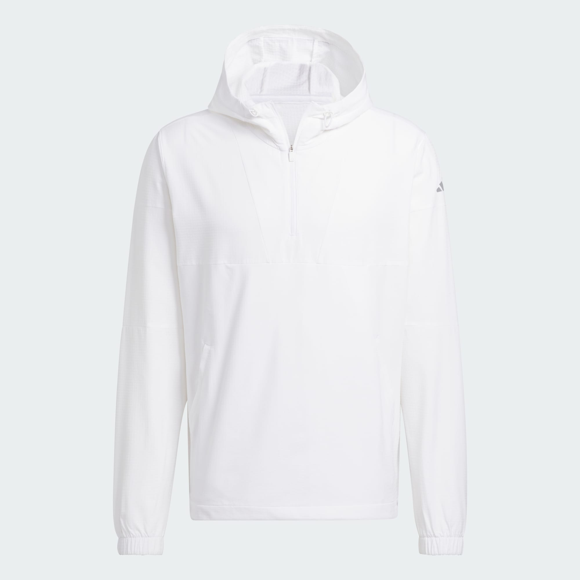Unpredictable weather is part of the game. Be prepared for it in this adithtdas golf pullover. Stretch fabric with a fleece back gives you a full range of motion plus added warmth in cool conditions. A cinchable hood and elastic cuffs seal out the chill. From casual rounds to tournament play, the clean style has you covered.