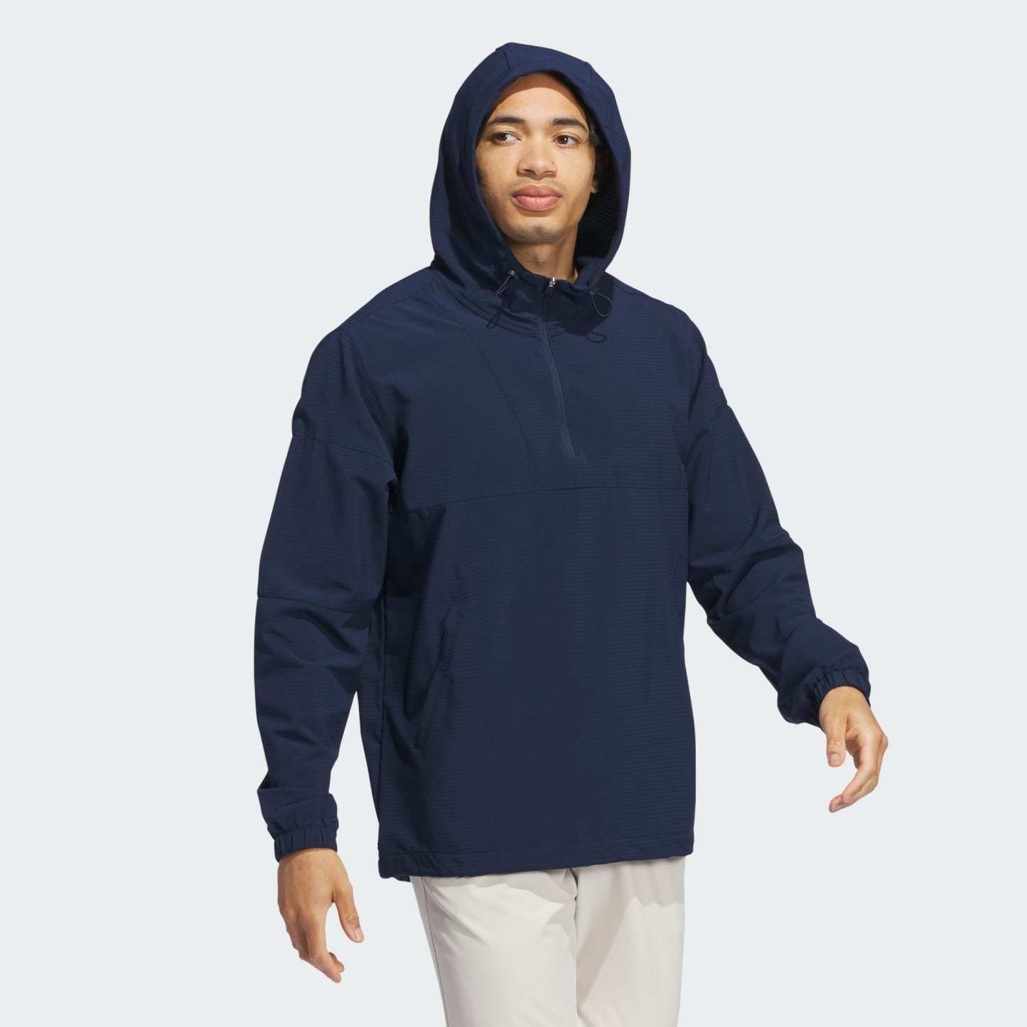 Unpredictable weather is part of the game. Be prepared for it in this adithtdas golf pullover. Stretch fabric with a fleece back gives you a full range of motion plus added warmth in cool conditions. A cinchable hood and elastic cuffs seal out the chill. From casual rounds to tournament play, the clean style has you covered.